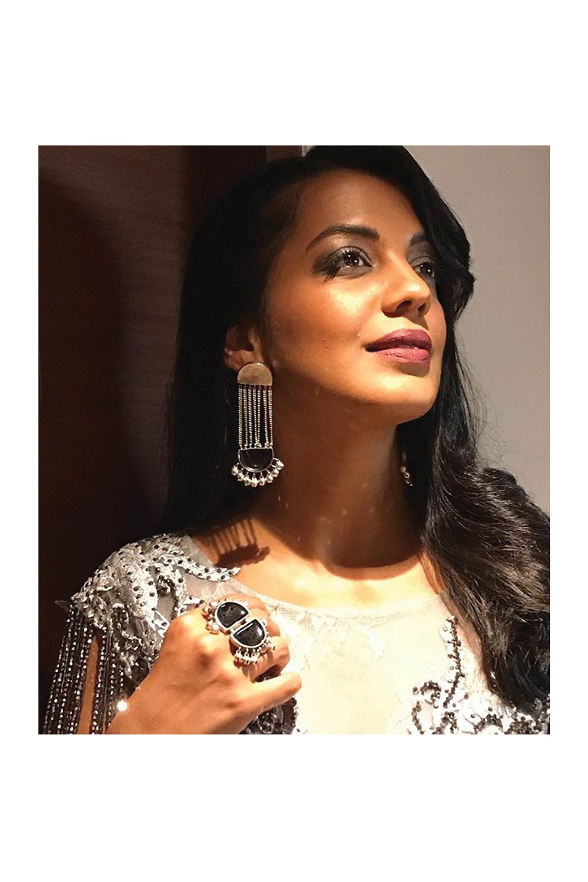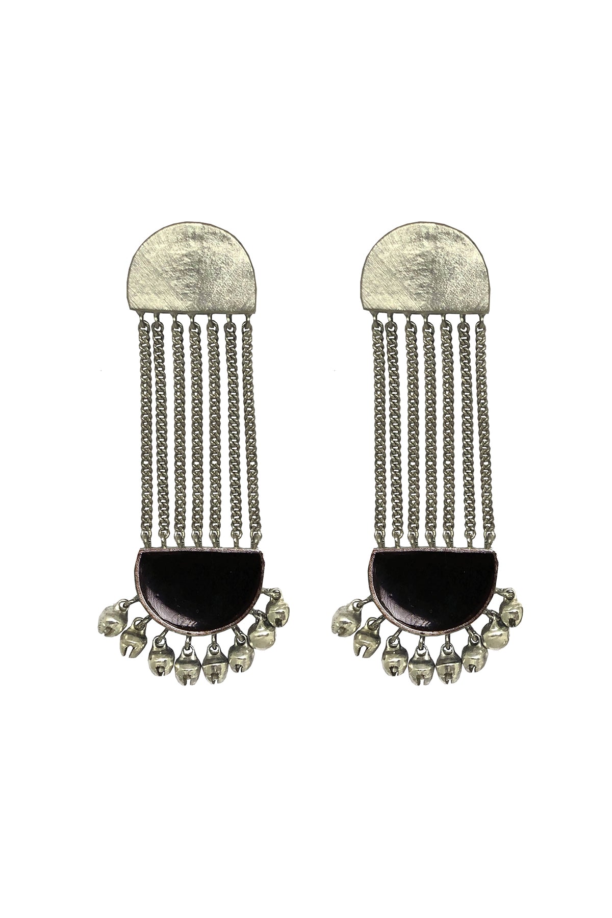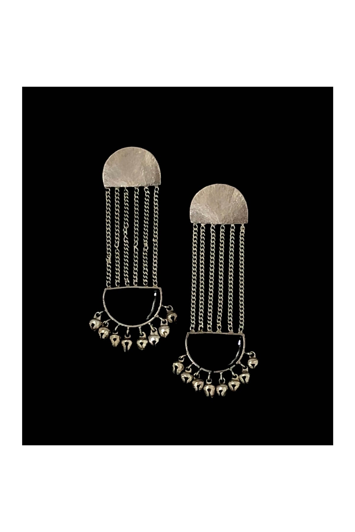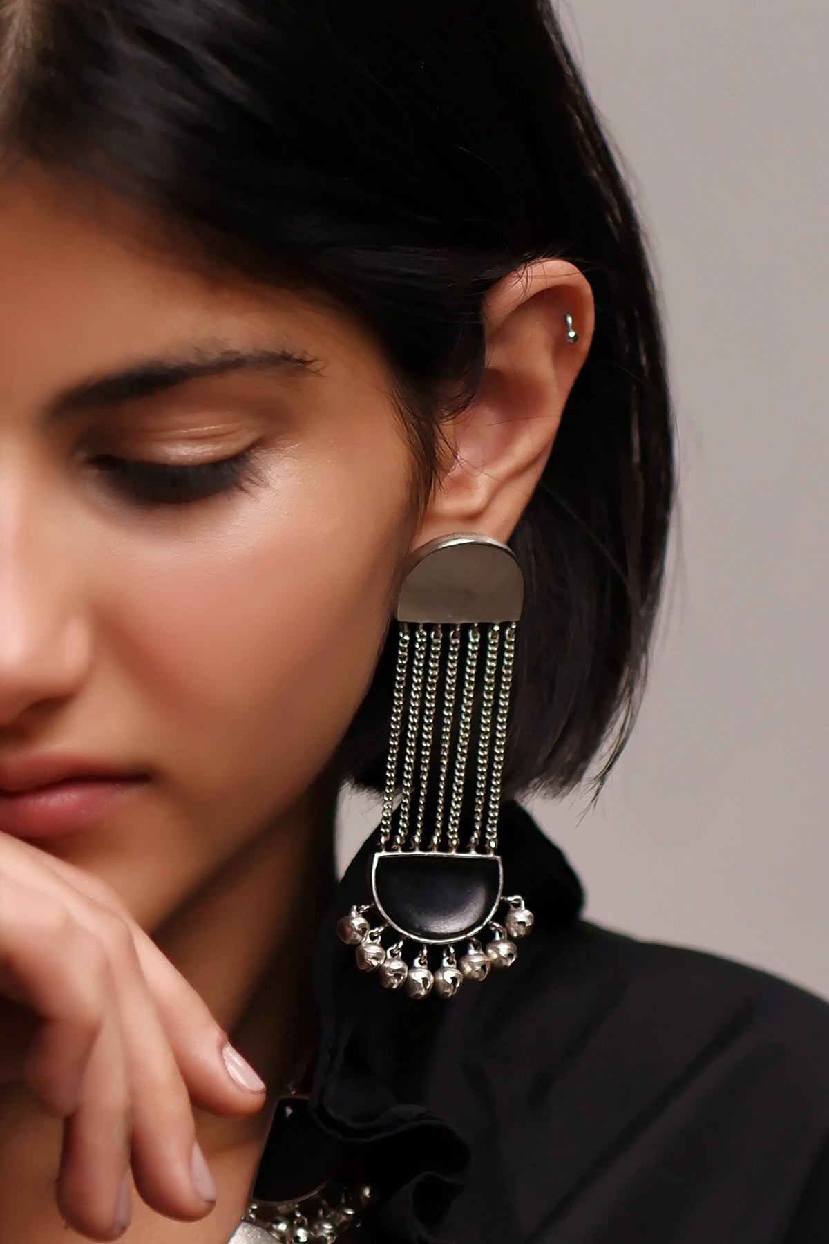 These beautiful pair of earrings are handcrafted to perfection using fine quality brass, ghungroos and black enamel with light silver plating on it. Traditional look with modern simplicity is what these earrings has to offer.