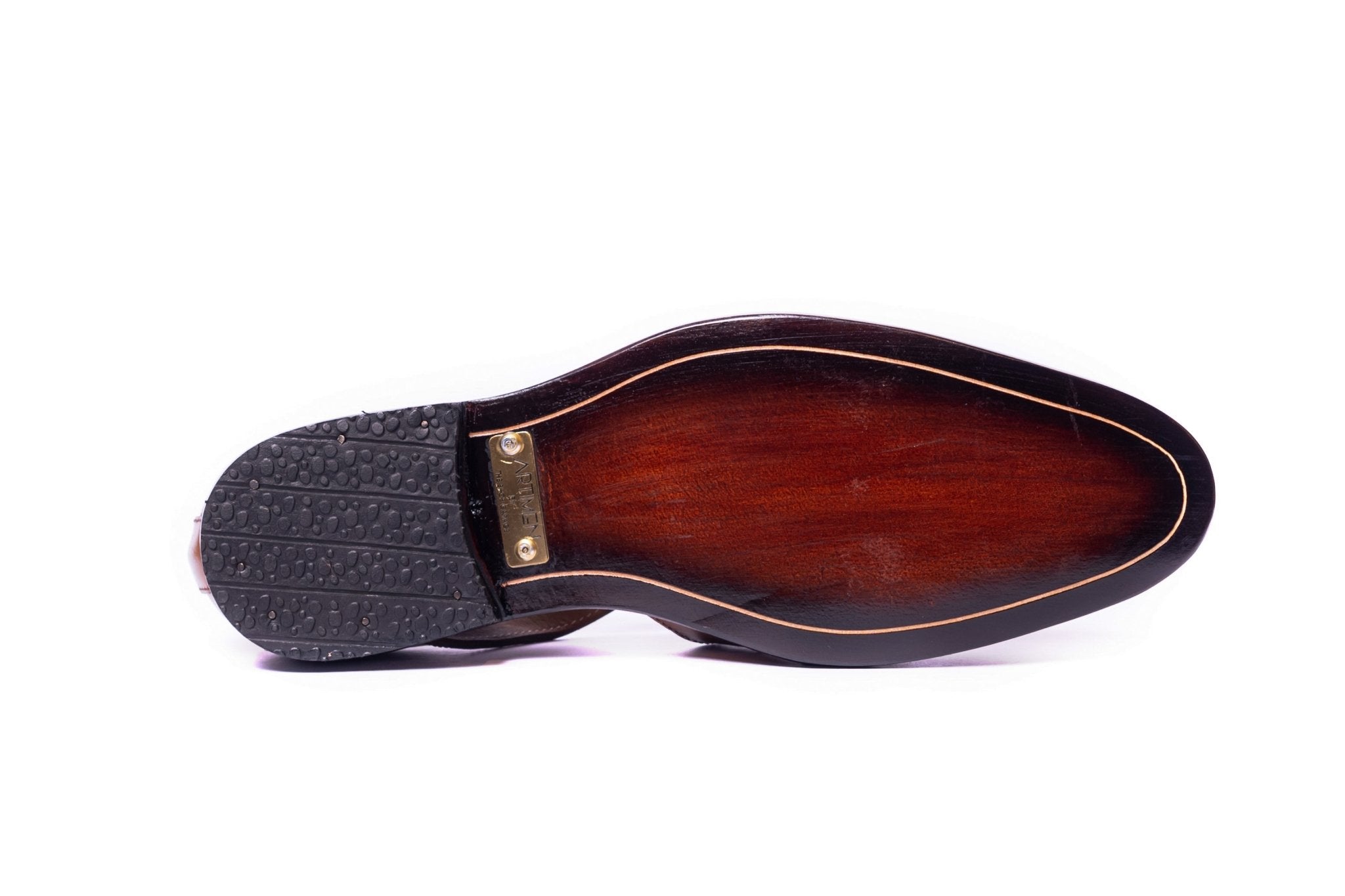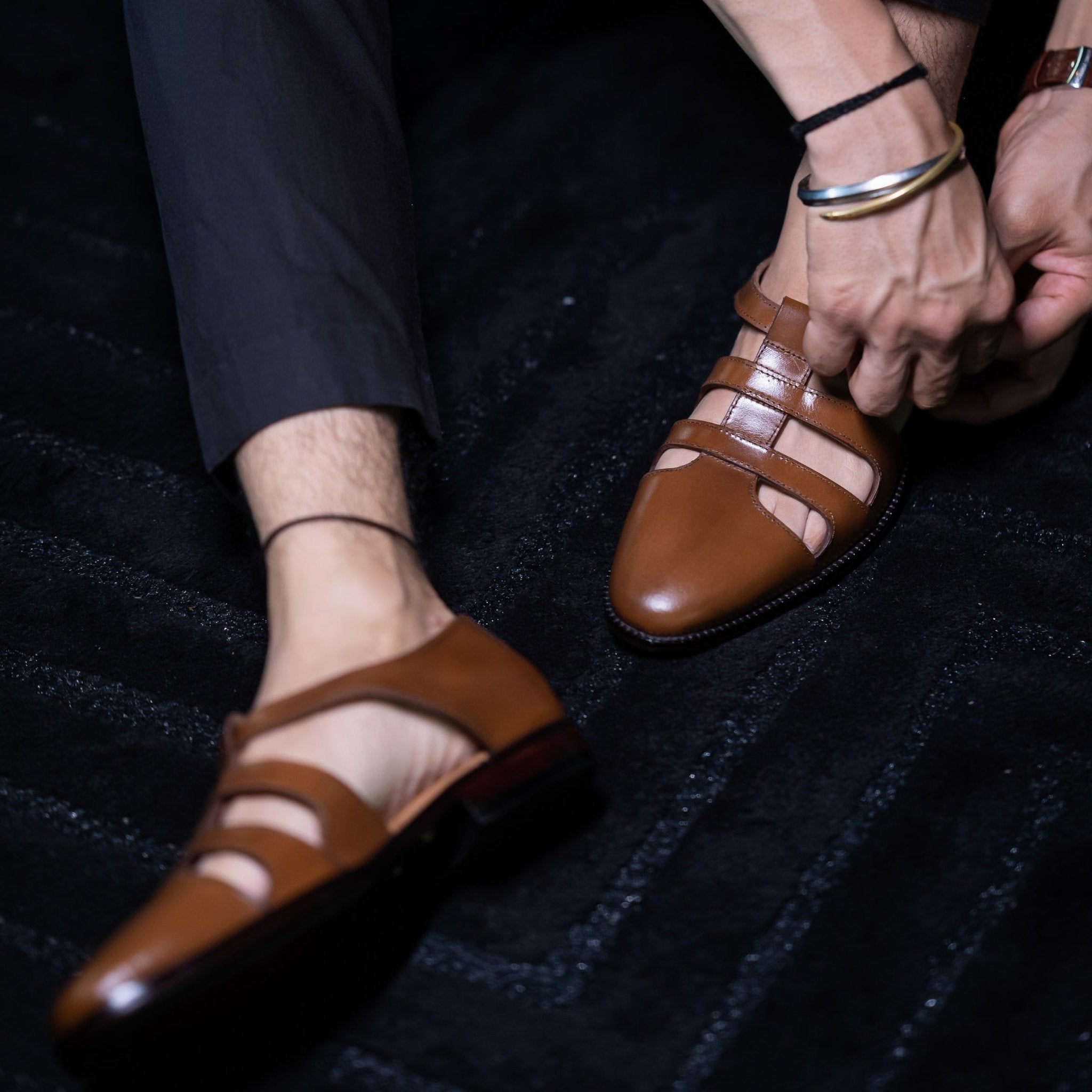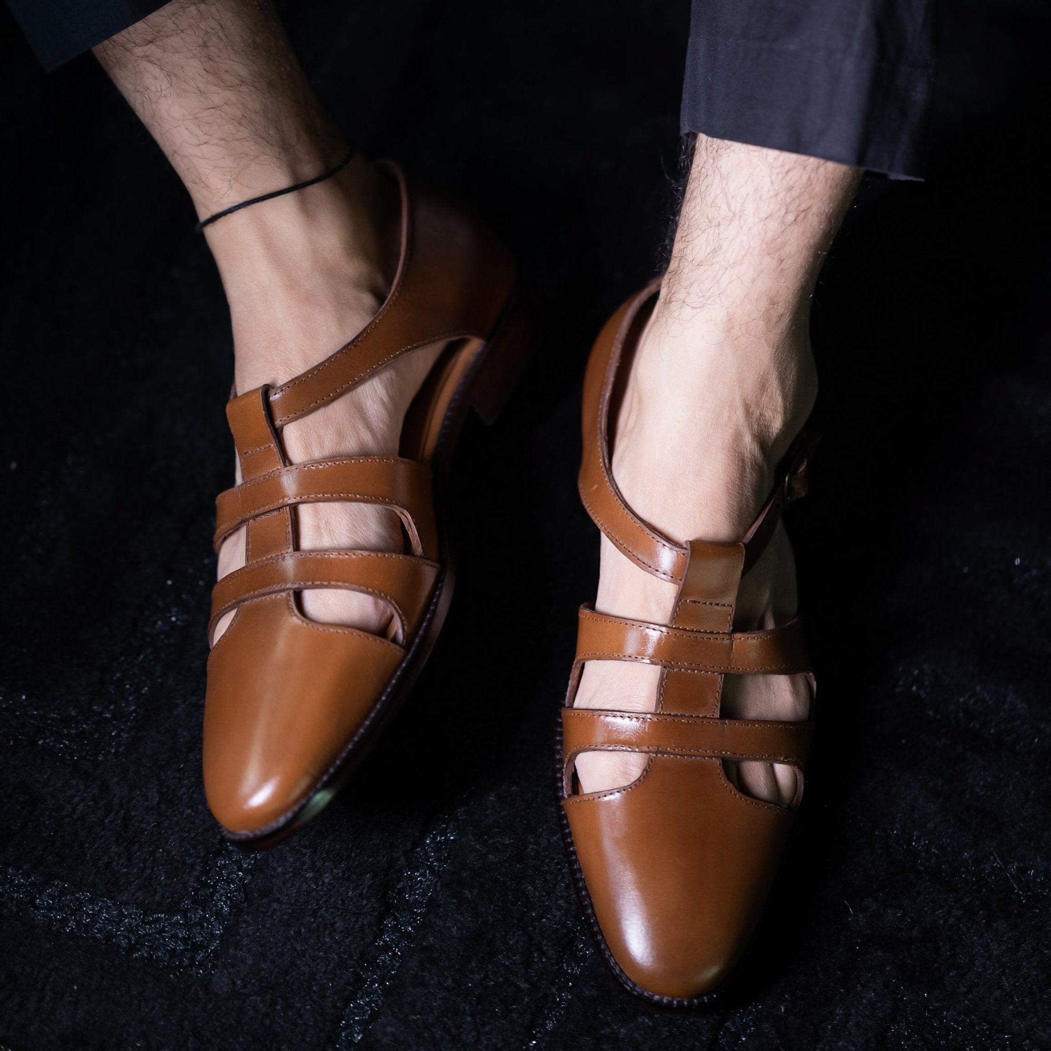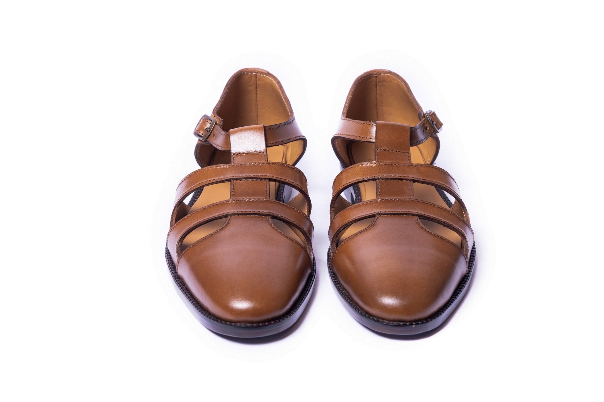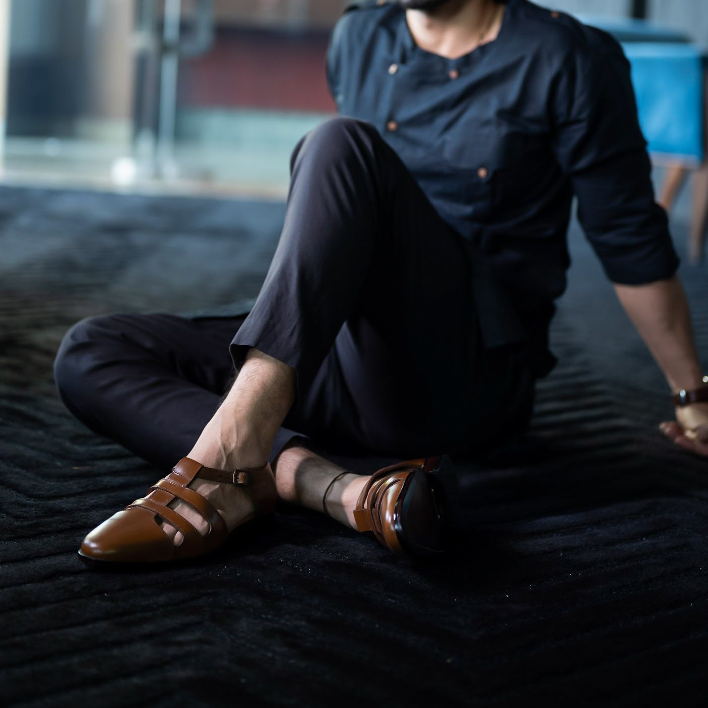 One of our newest addition to Sandal collection. These fin strapped sandals are new to the line of traditional wear but seem to have taken over. Burnt deep brown shade is a perfect replacement for the traditional sandals. This could be worn with traditional or even with smart casuals.