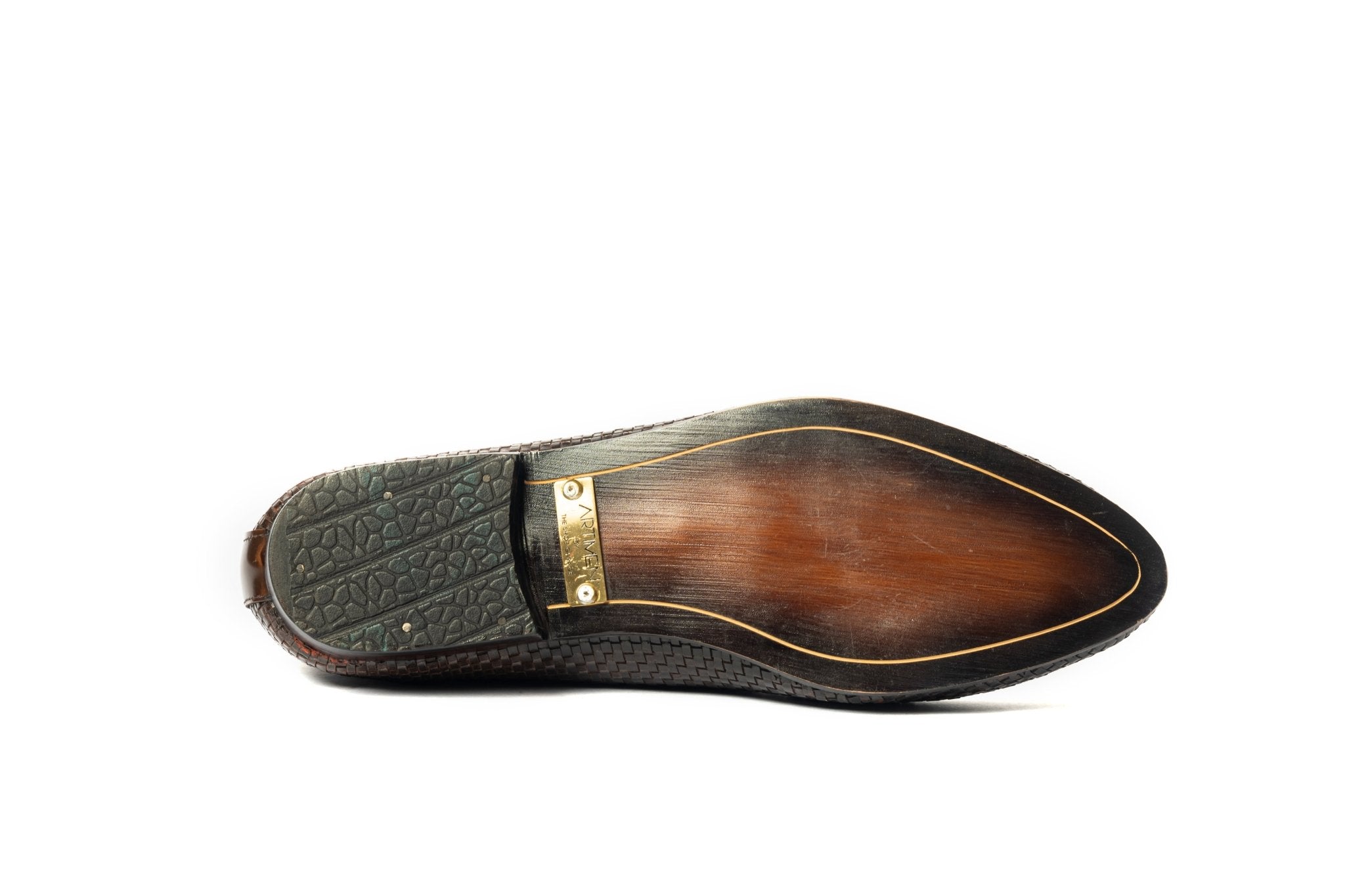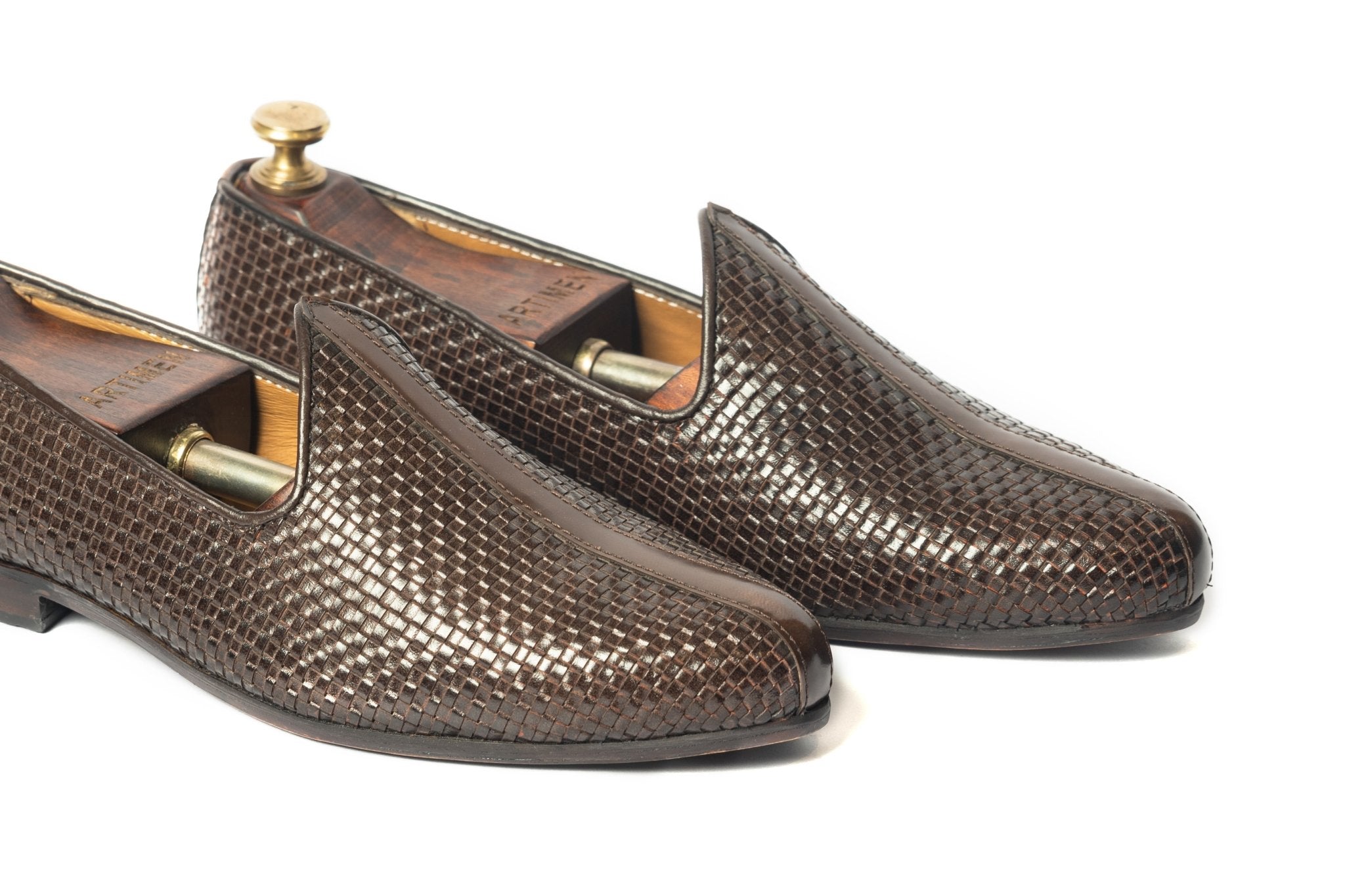 These handwoven leather juttis can be worn at anytime. The woven texture gives these juttis a loafer feel, which perfectly blends in with every mood you step into.