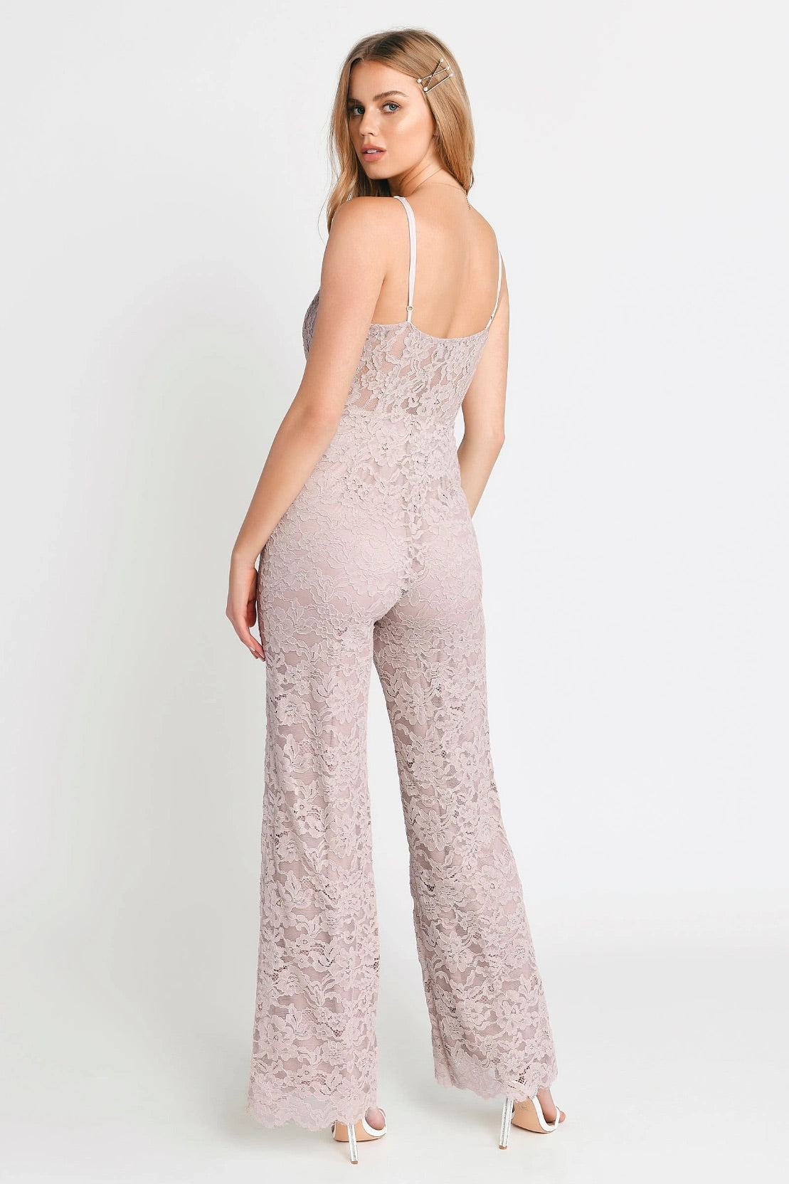 Feel fancy in the Champagne Wide Leg Cami Jumpsuit. Wear this formal jumpsuit to your next formal event to switch things up! This elegant jumpsuit features a beautiful lace overlay with a two pocket cut, wide leg pants, and a plunging v-neckline on a soft and stretchy cotton knit! Fancy never felt this good.