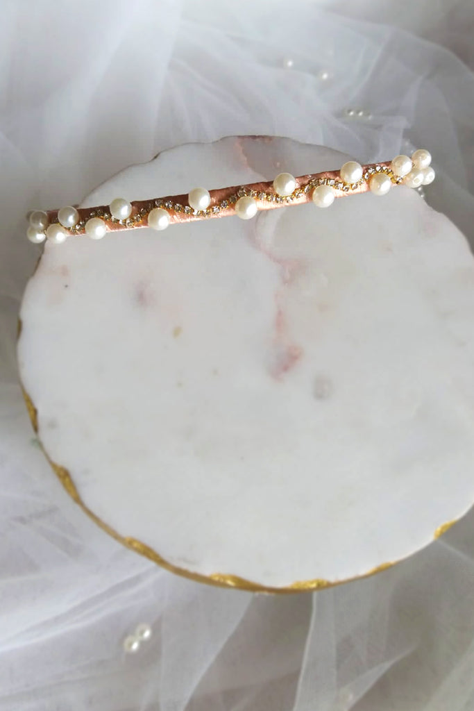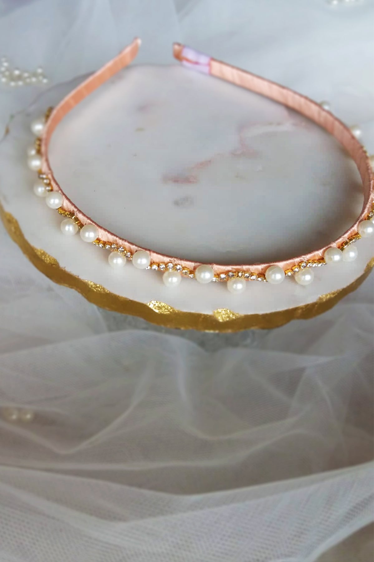 Pearl Detail Jewelled Hair Band - Gold & Off White