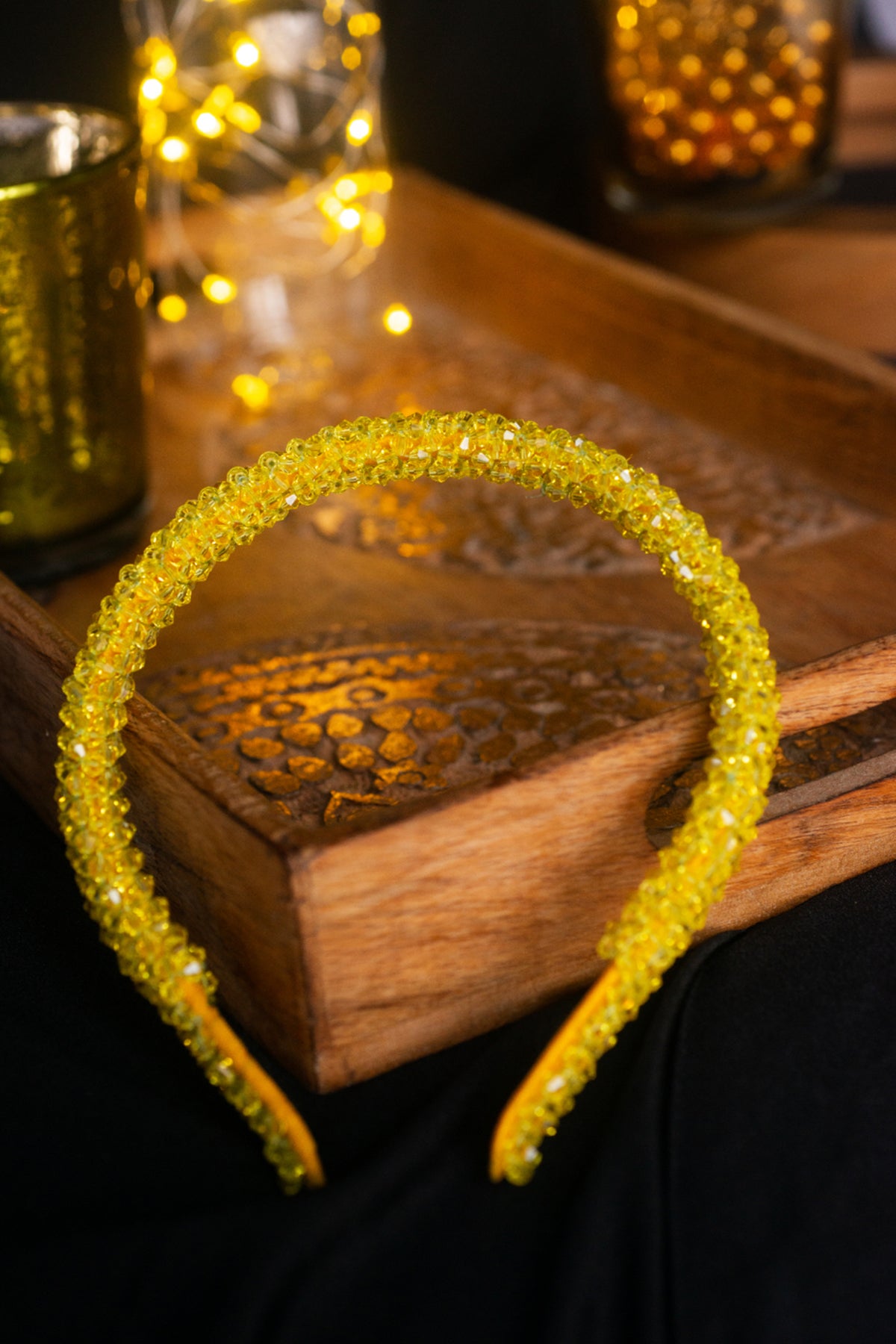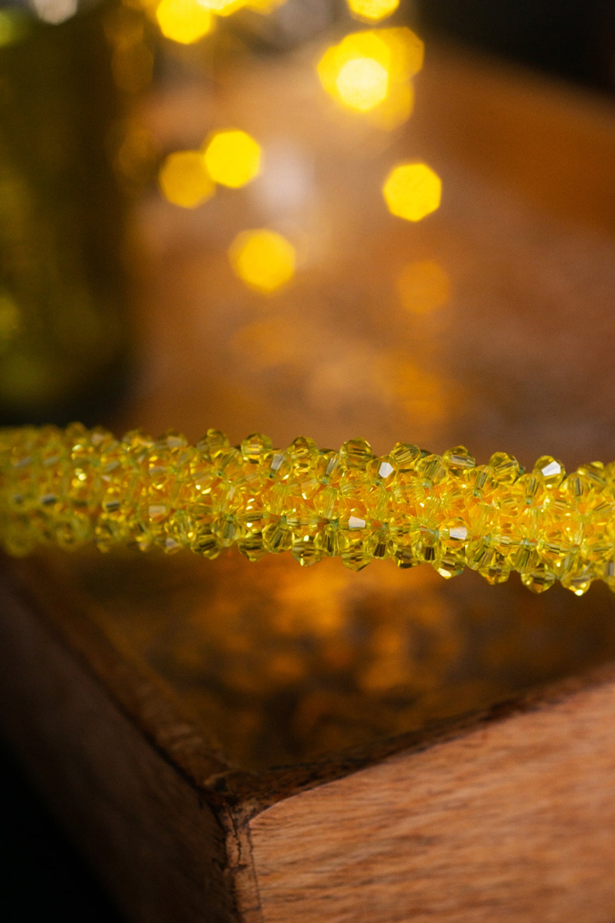 Yellow crystals in tightly arranged layers and a simple design for those who love mysterious, understated looks. Wow with these when paired with cocktail dresses and heels.