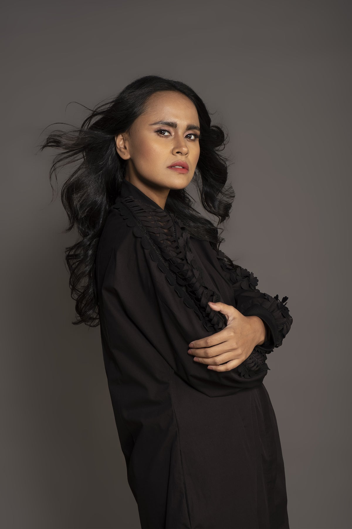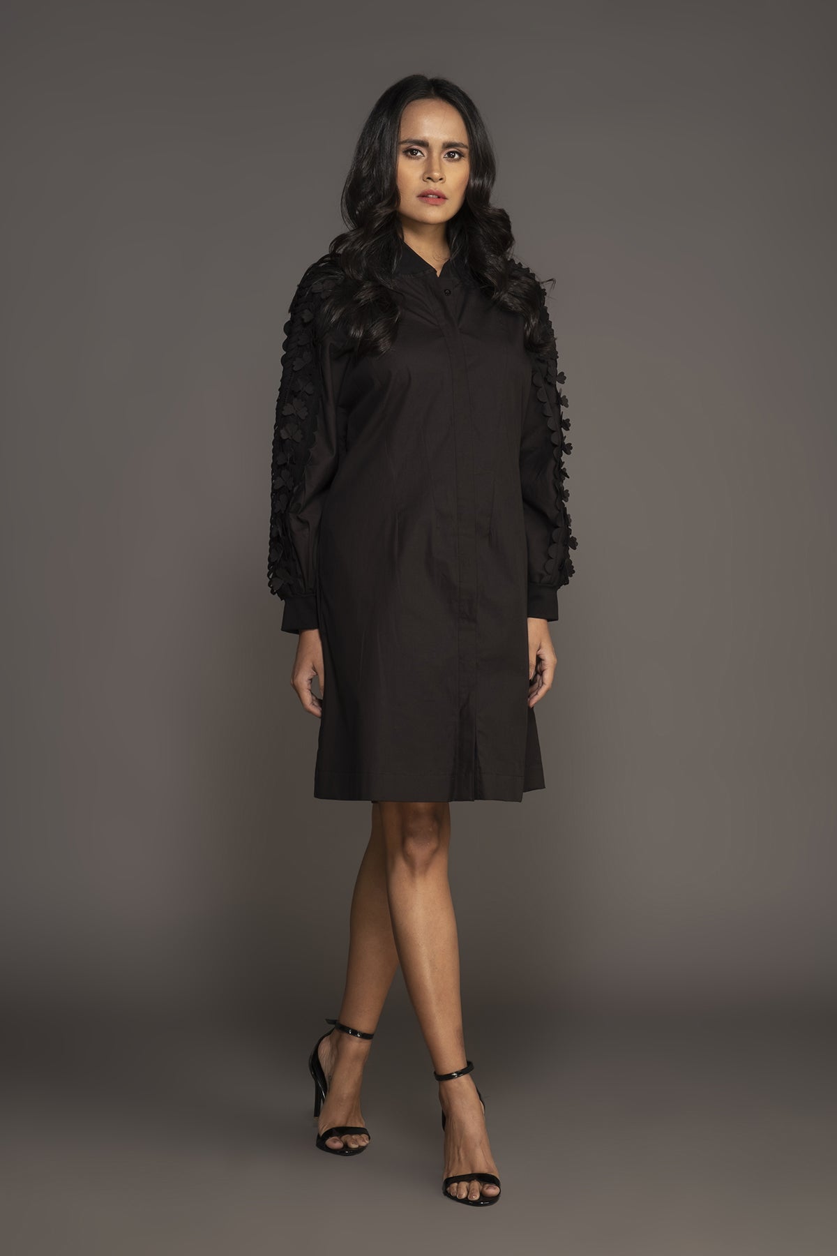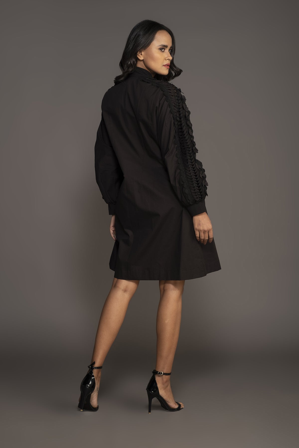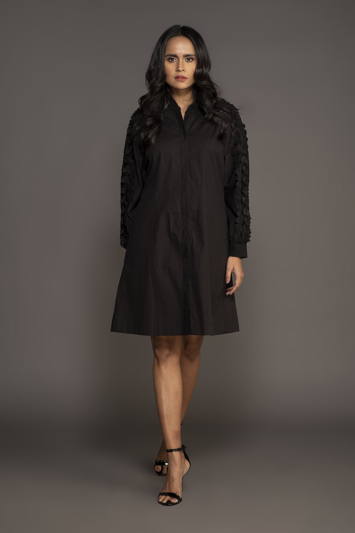 A-line cotton dress with 3D cutwork detailing on sleeves