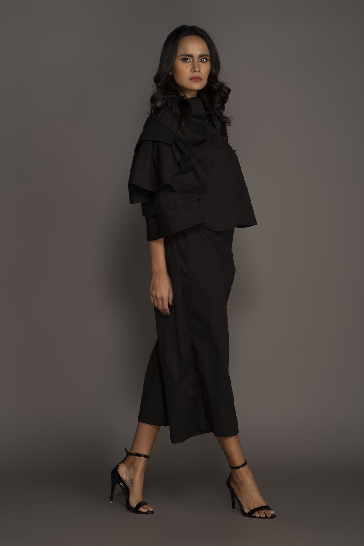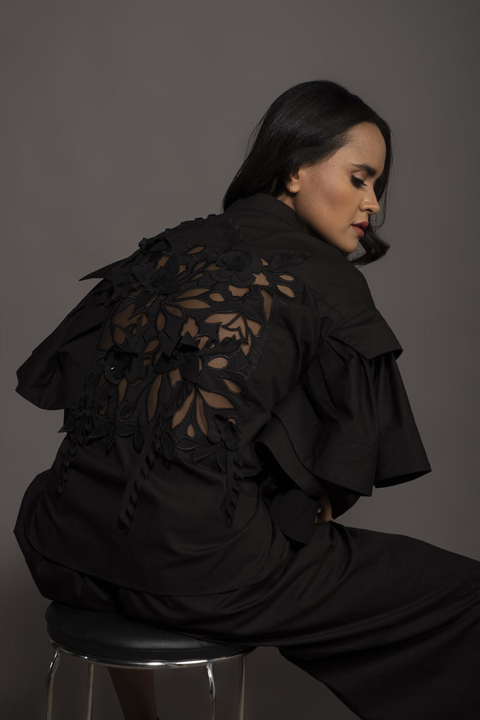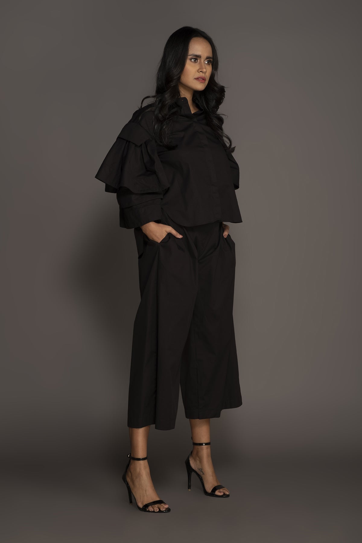Cotton Layered sleeve top & pants co-ord set with embroidery & flower applique work at back.