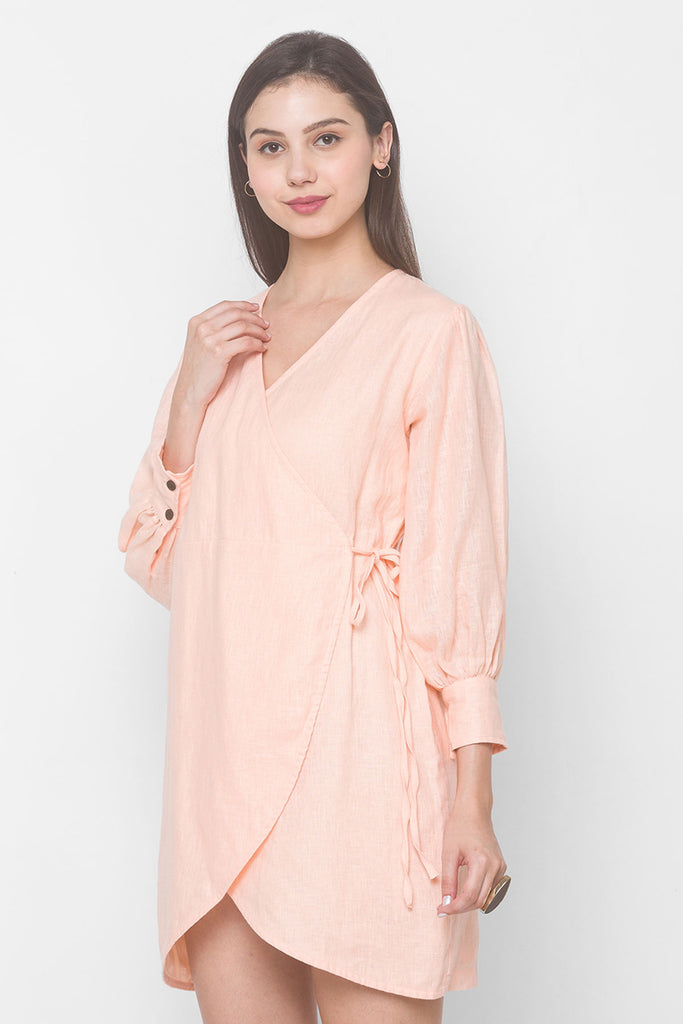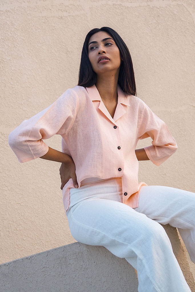 Rose Peach Organic Linen Sport Collar Laelia Shirt