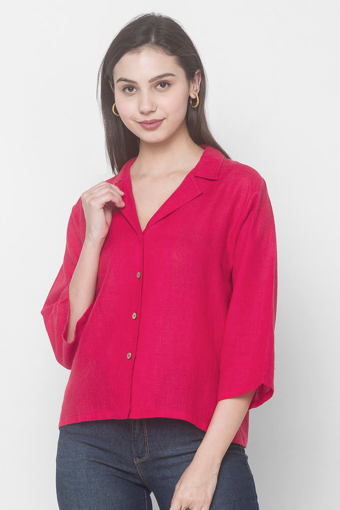 Fuchsia Pink Organic Linen Sport Collar Laelia Shirt
