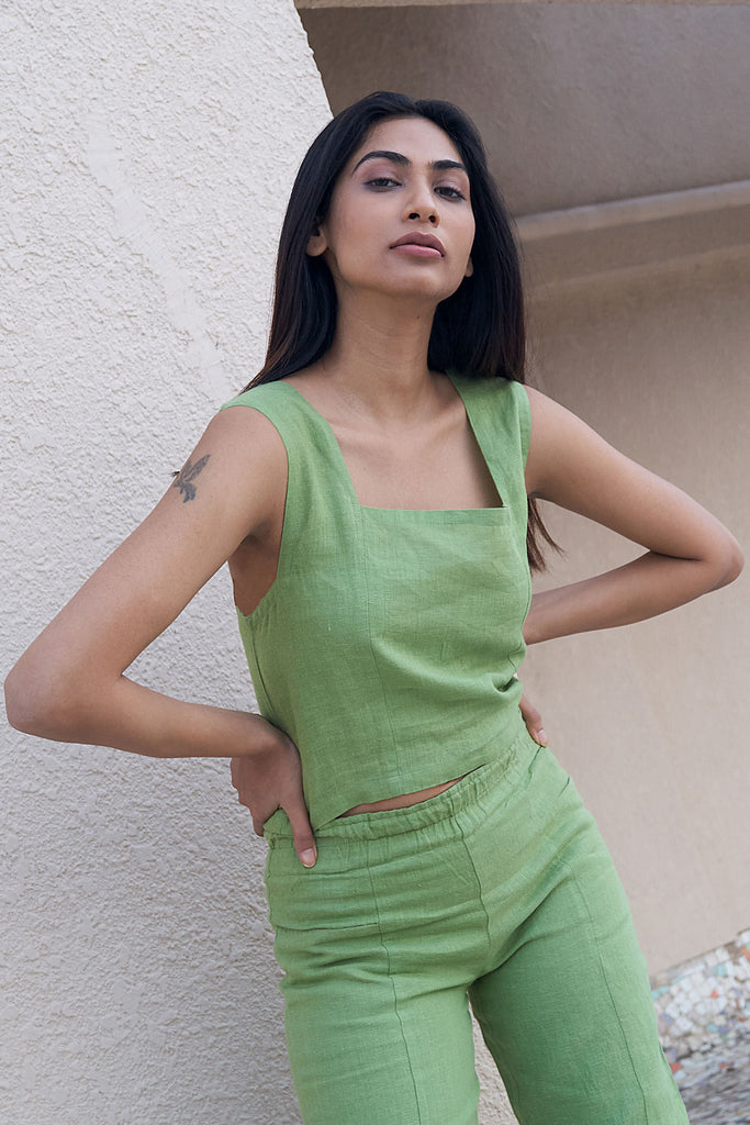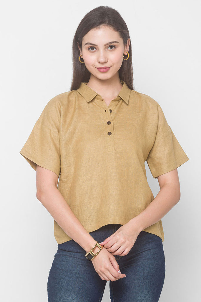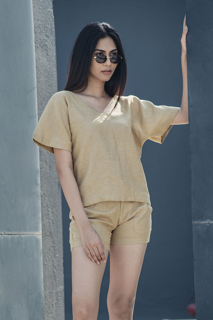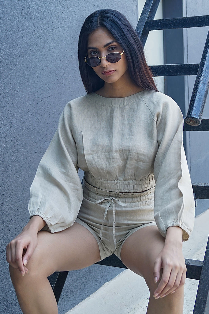 Natural Linen Beige Organic Linen Cropped Hem Moraea Top