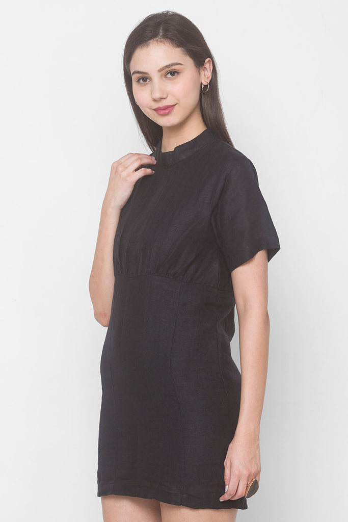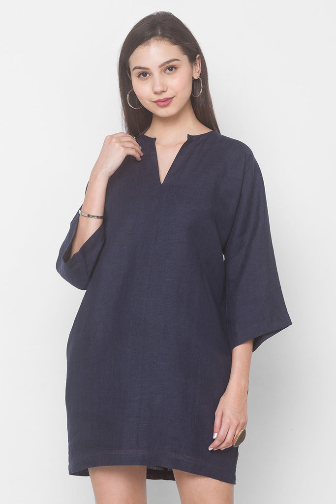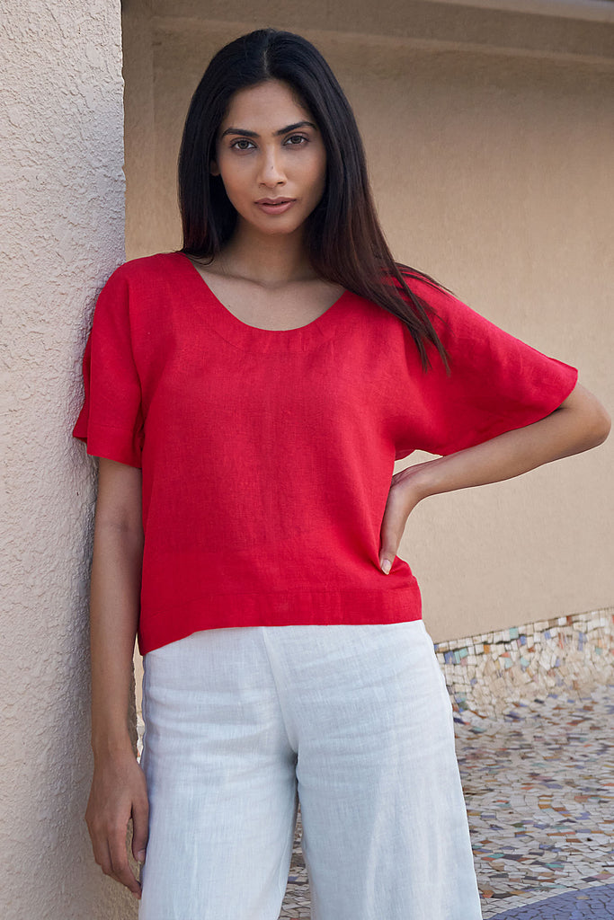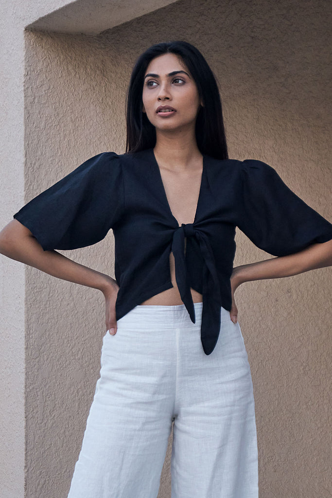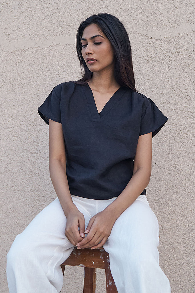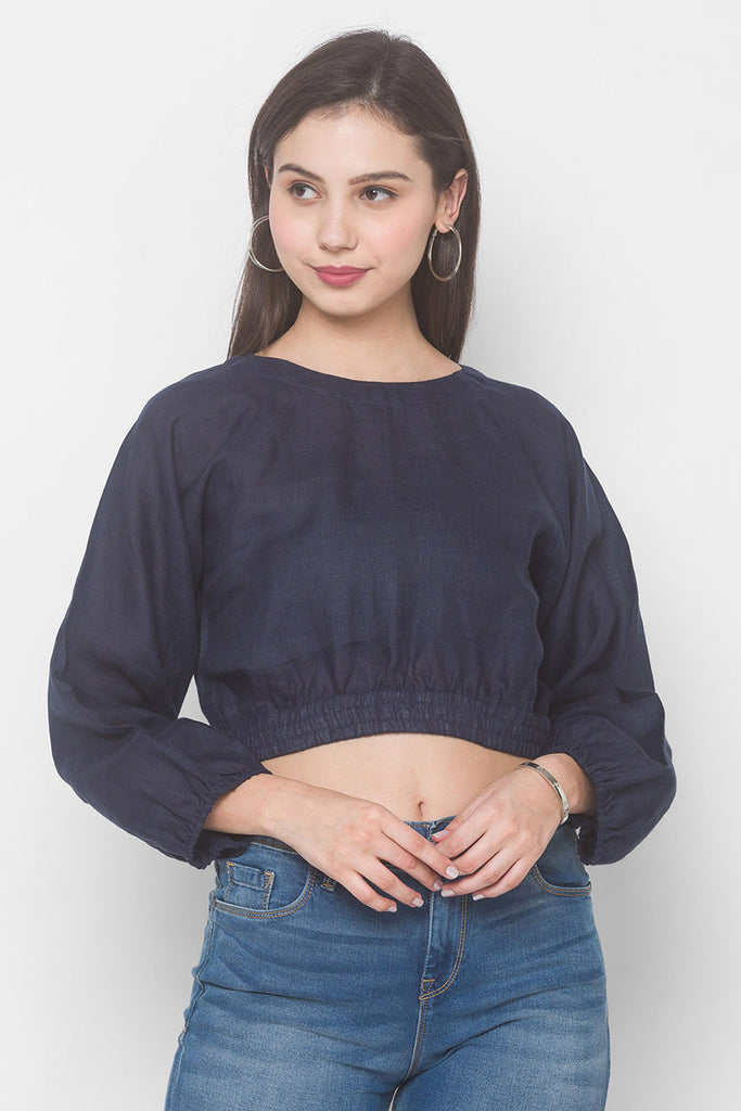 Carbon Blue Organic Linen Cropped Hem Moraea Top