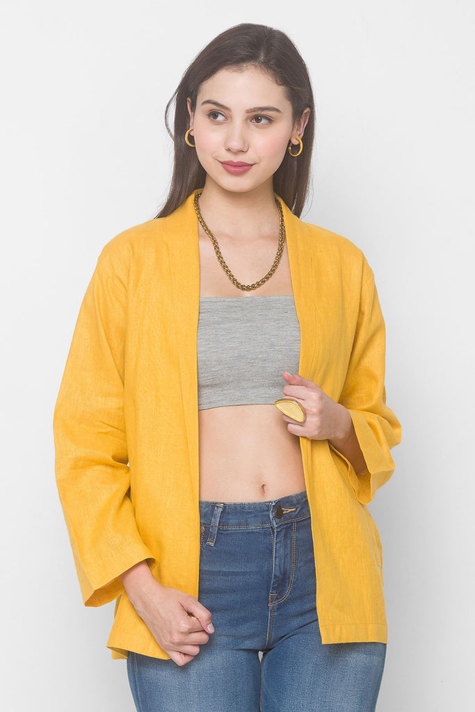 Honey Mustard Yellow Organic Linen Front Tie Brassica Top