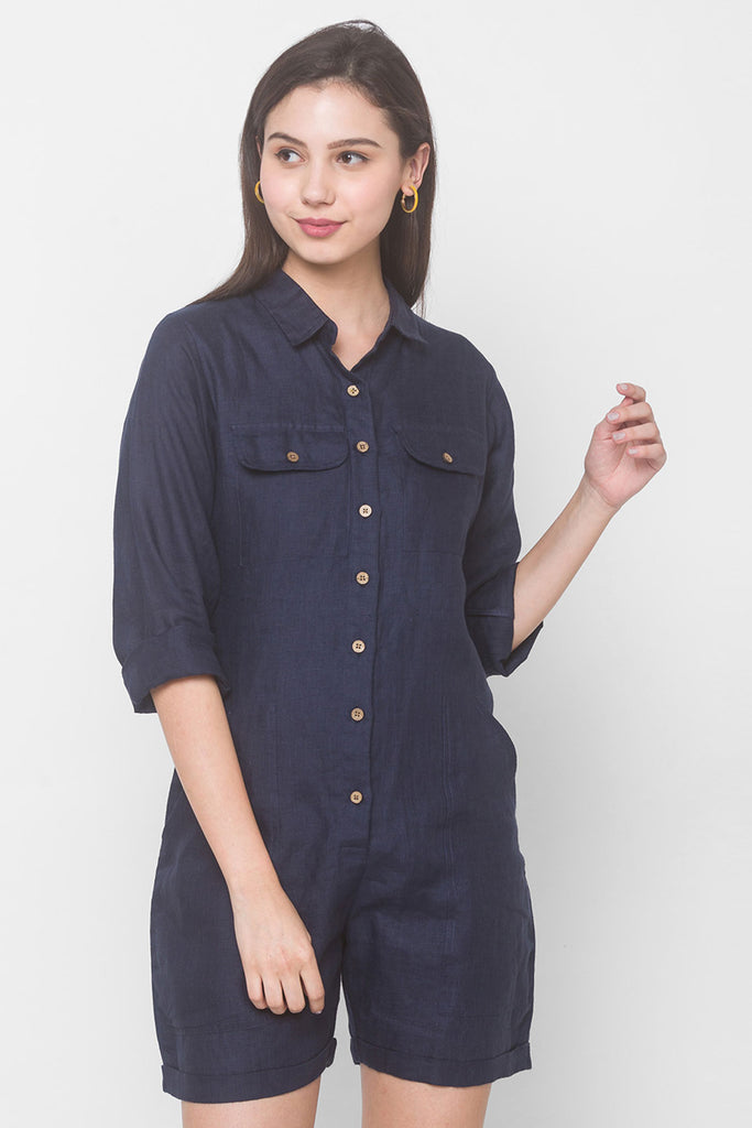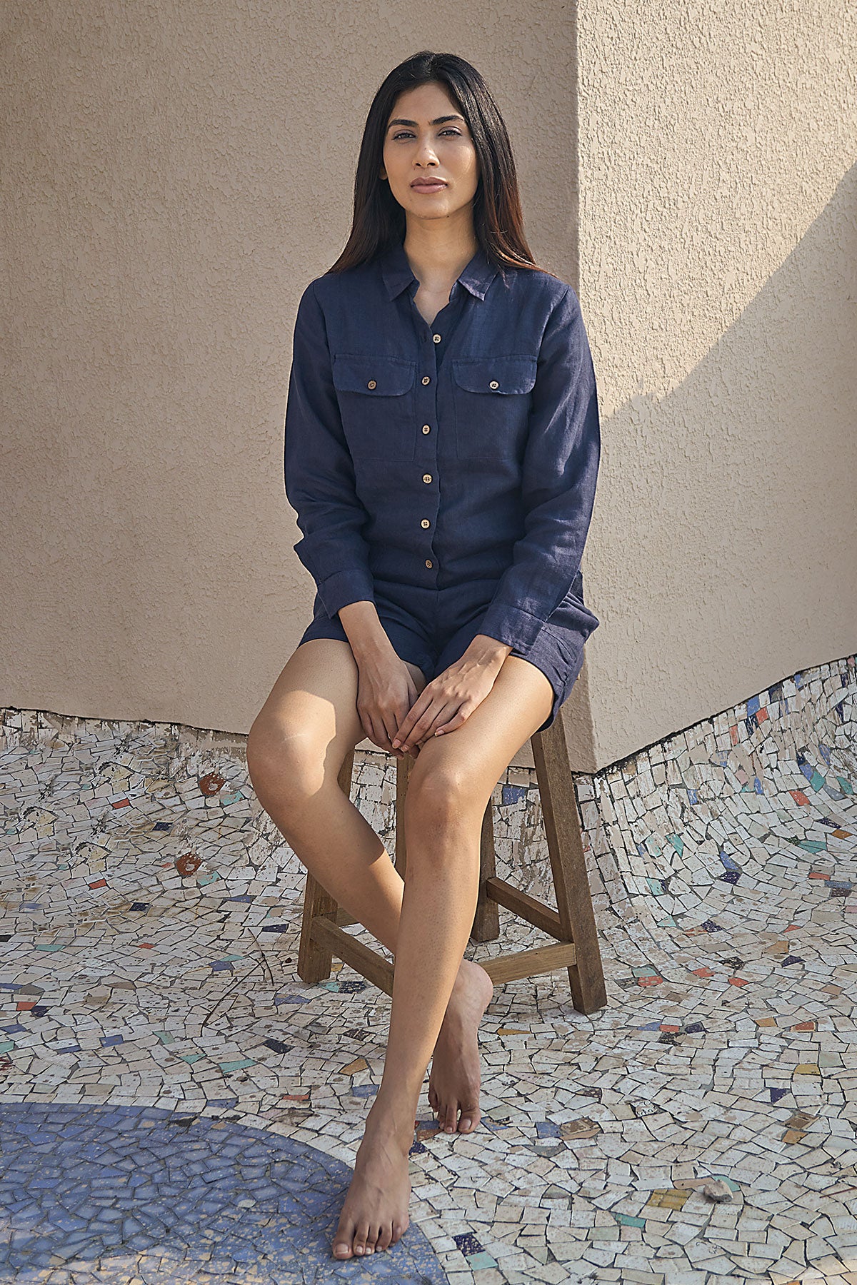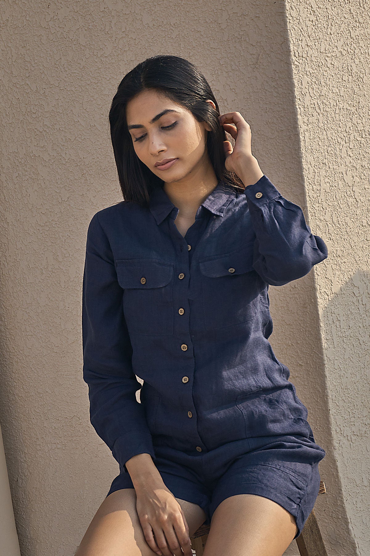 Made for both busy and slow days, the crisp kaffir jumpsuit spells sophistication in every angle. designed to get better with age, it features double chest pockets, front and back patch pockets and long sleeves that can easily be rolled up. it offers maximum comfort and movability while making you look put-together without too much effort.