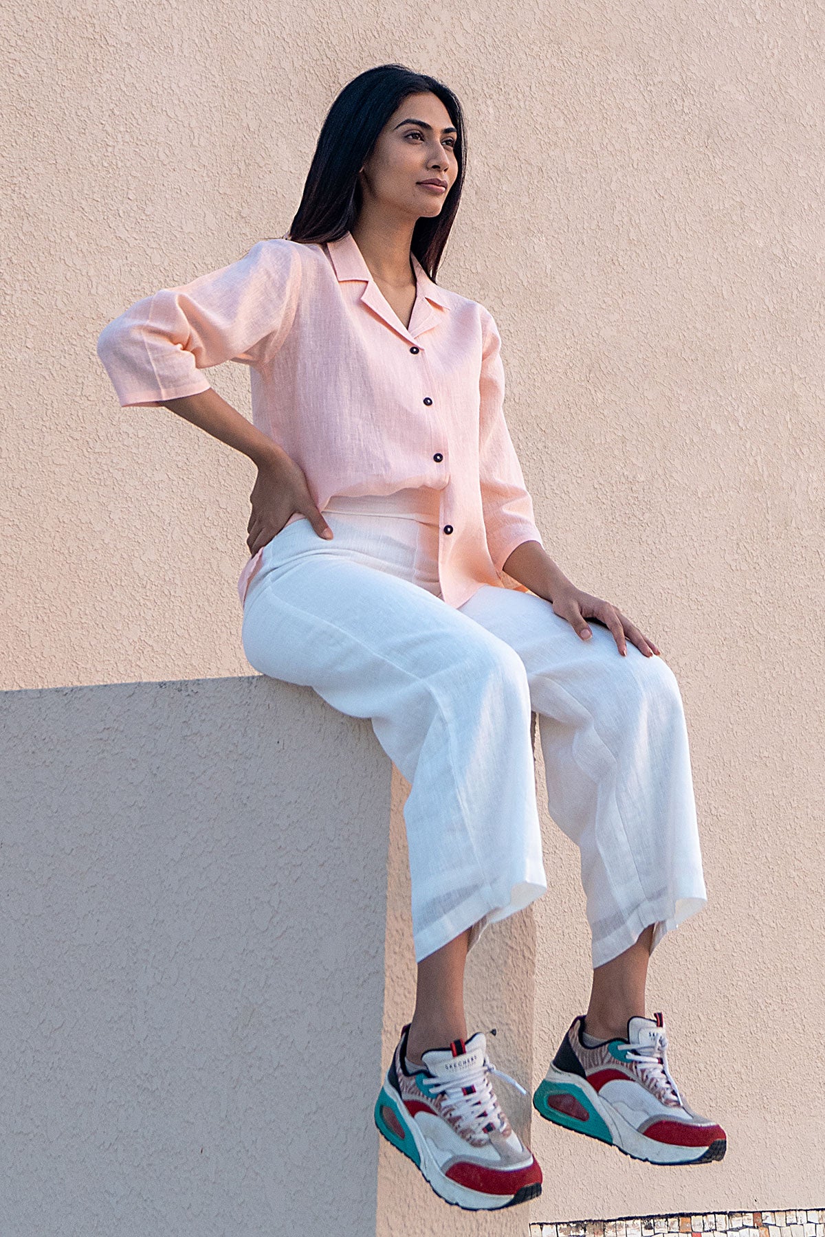Rose Peach Organic Linen Sport Collar Laelia Shirt