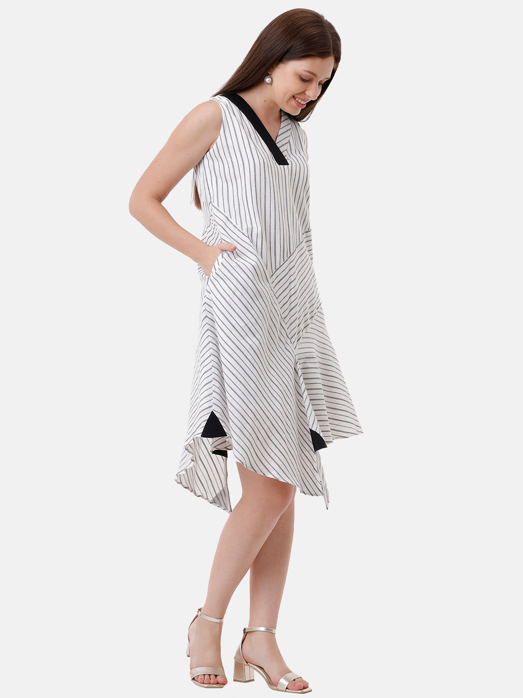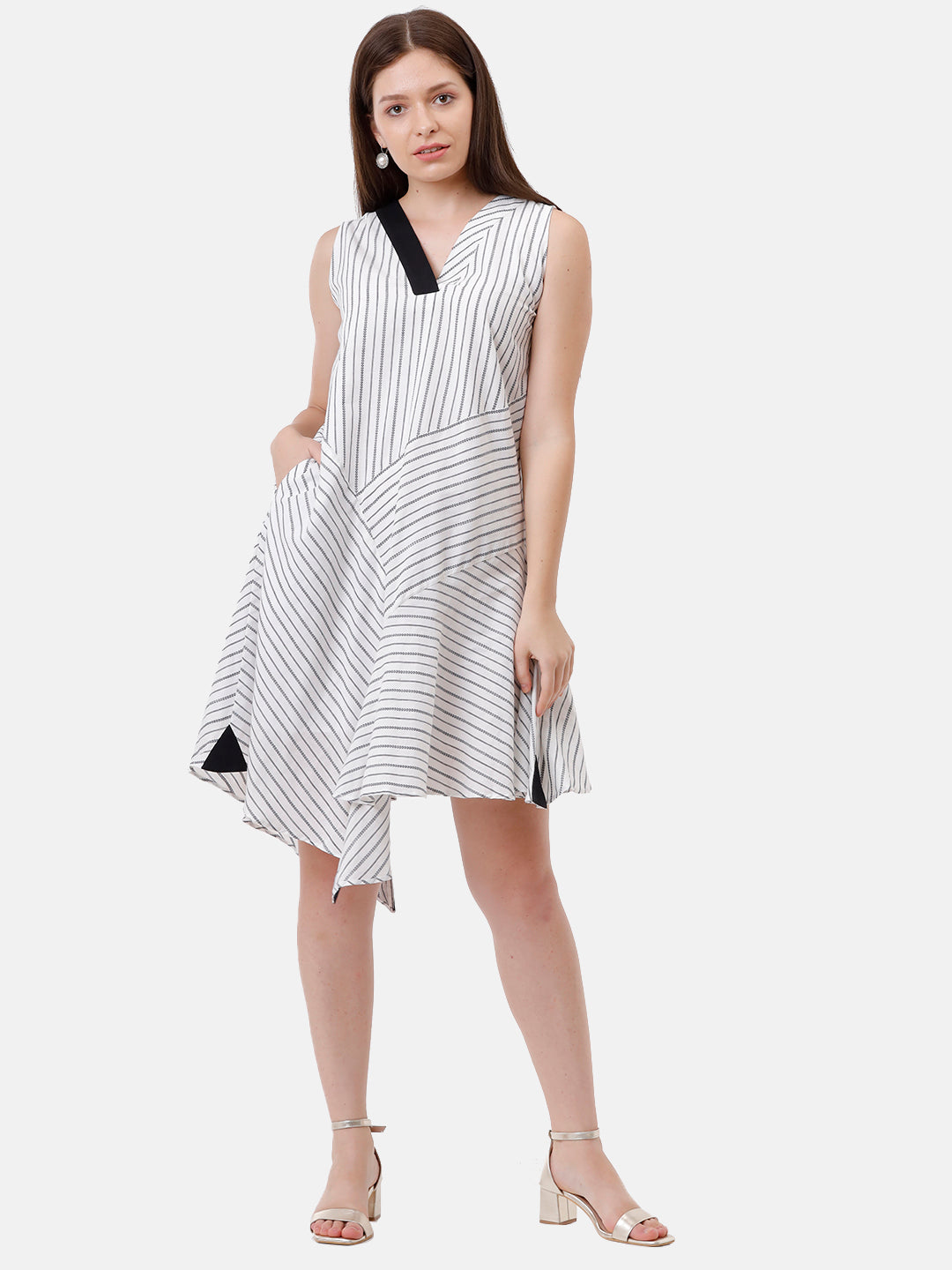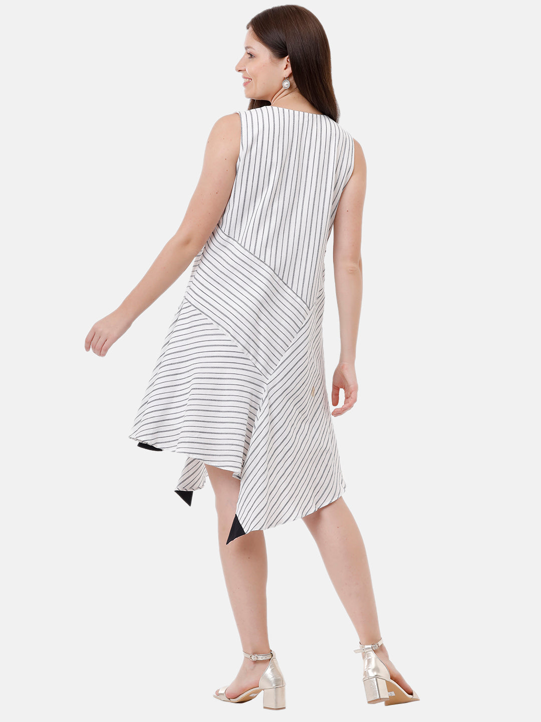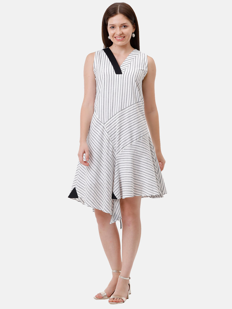 Its an asymmetrical black stripe dress.