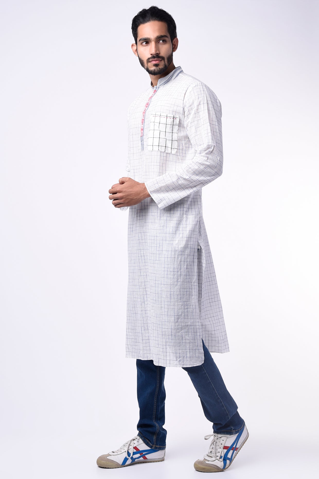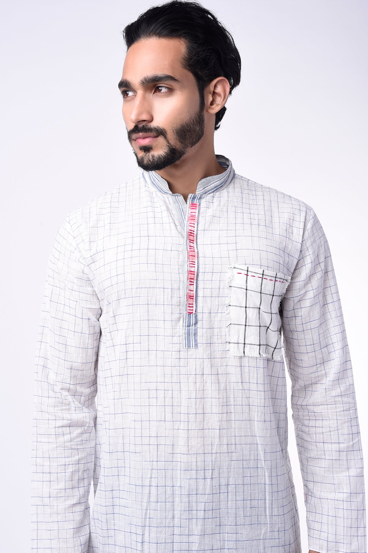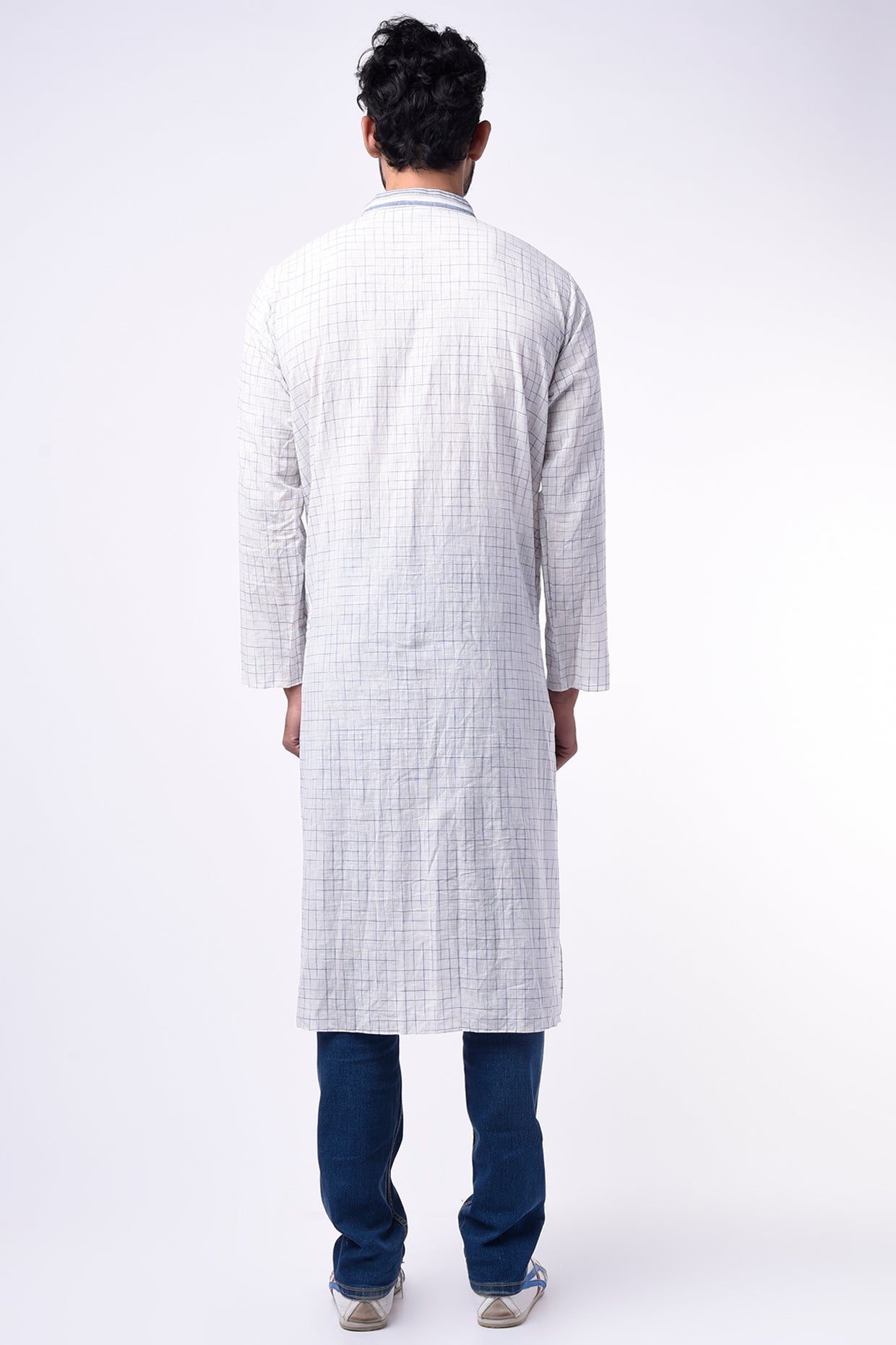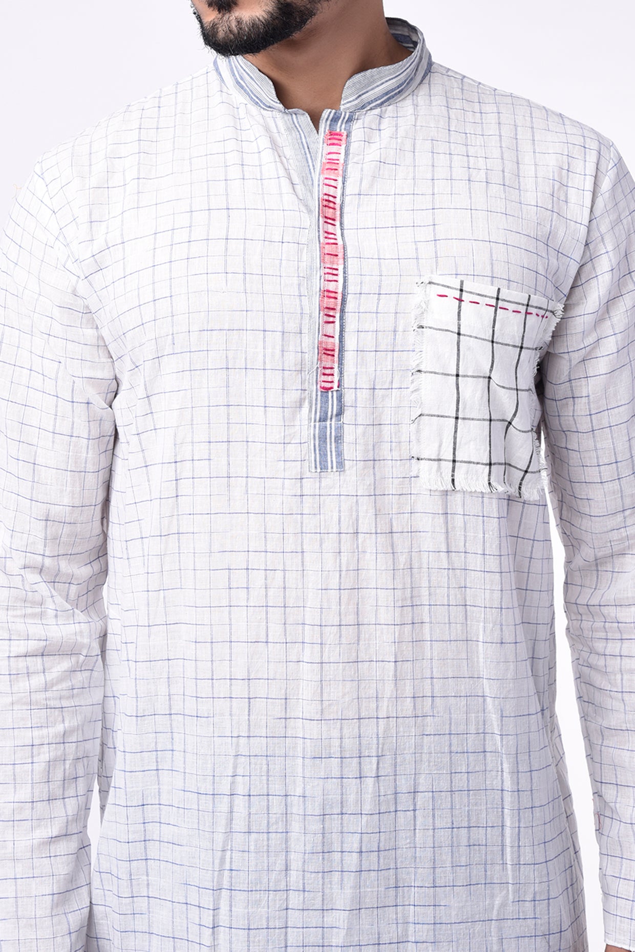 Featuring A Blue Checks Cotton Kurta With Anchor Embroidery Detail And Side Pockets.