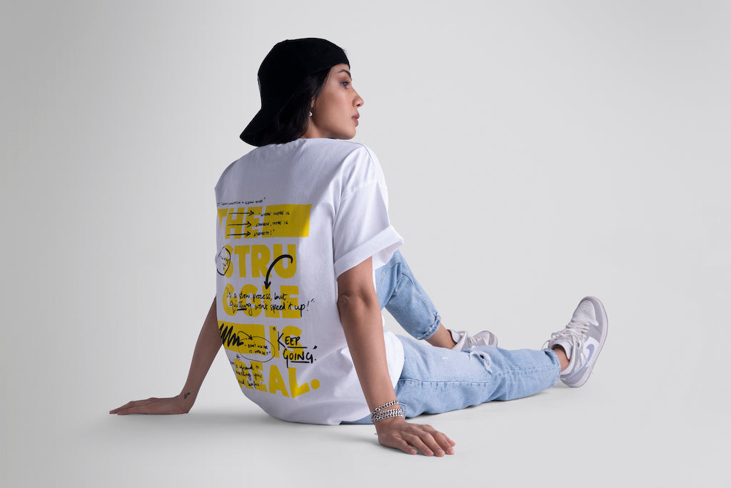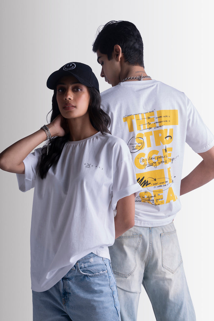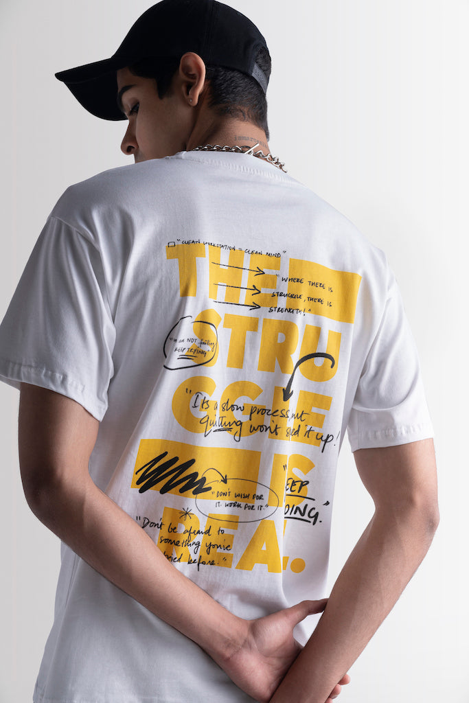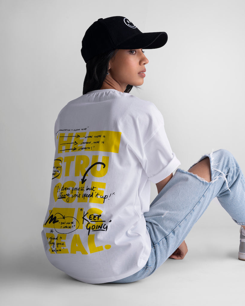 If you're struggling that means you’re also progressing. Don’t let anybody tell you otherwise. Make this gentle reminder t-shirt your wardrobe essential today!