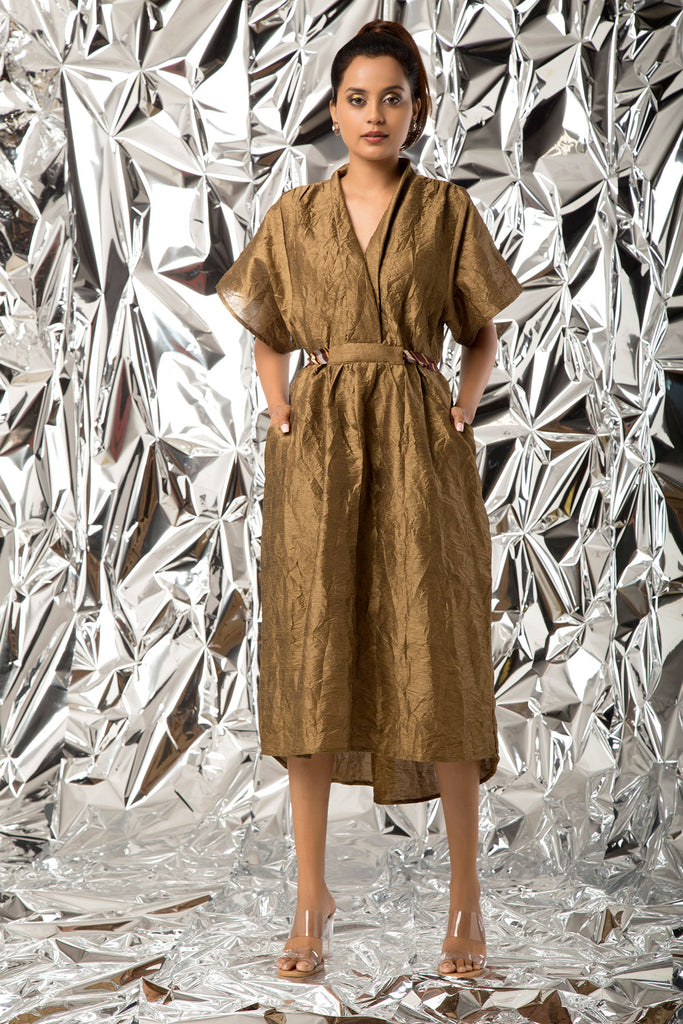 Ruffled sleeve Yellow Gold jumpsuit with belt