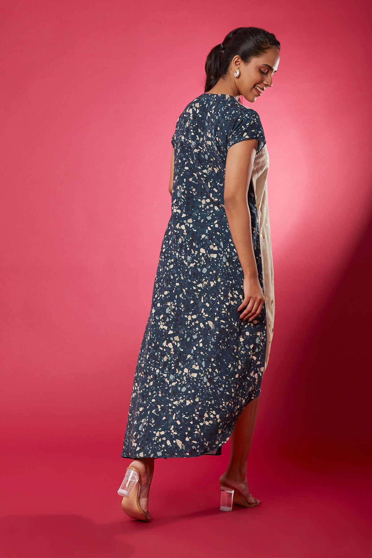 Diagonal Placket Dress Foil Print & Custom made Buttons