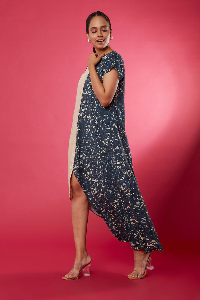Diagonal Placket Dress Foil Print - Midnight Color