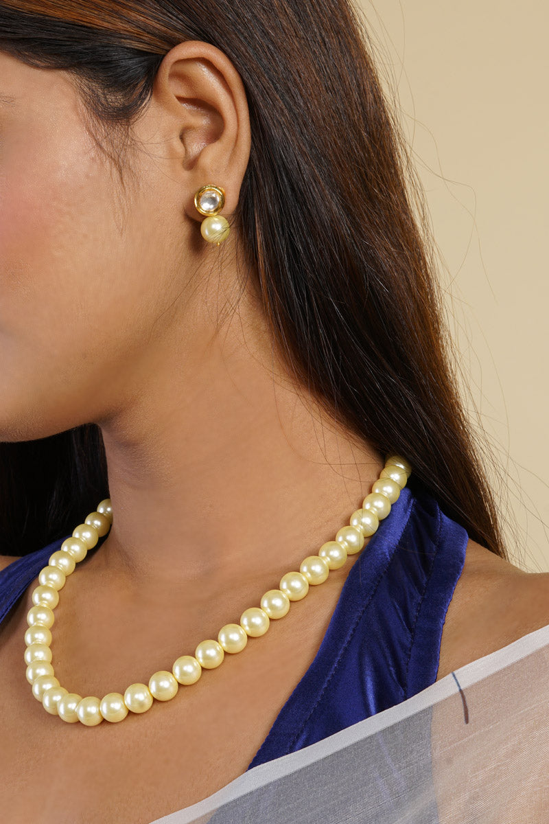This jewellery set consists of a Necklace & a pair of Earrings. Copper Brown Beaded Pearl Jewellery Set, secured with drawstring closure. A pair of matching earrings each secured with post and back closure.