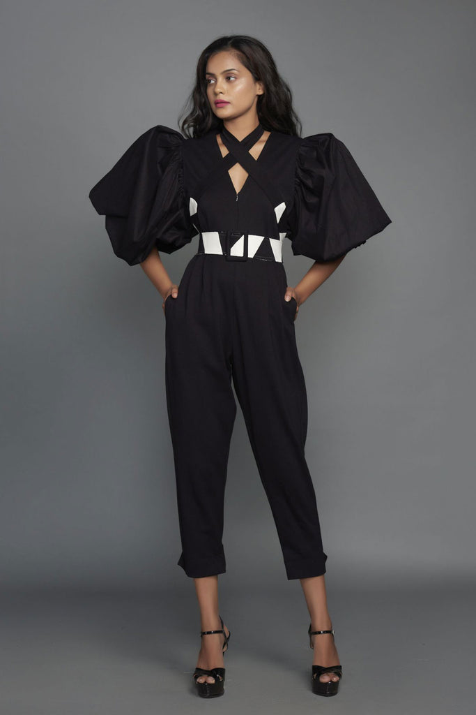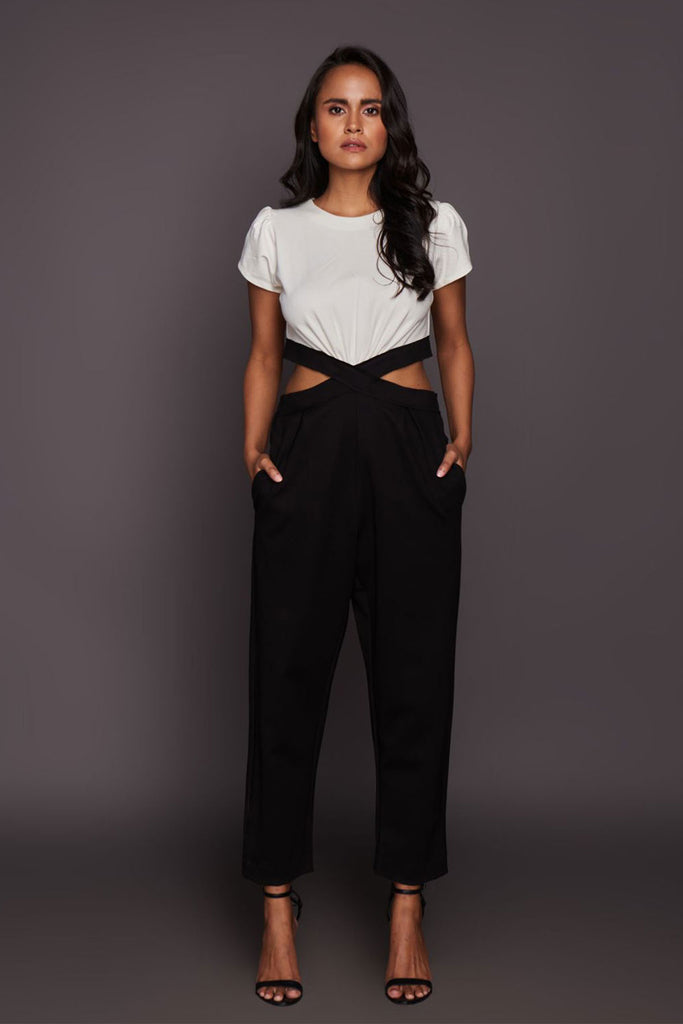 Black & White Cross Body Jumpsuit