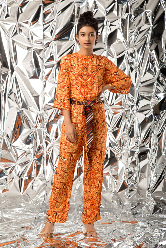 3/4 sleeve jumpsuit with belt- Orange Pink