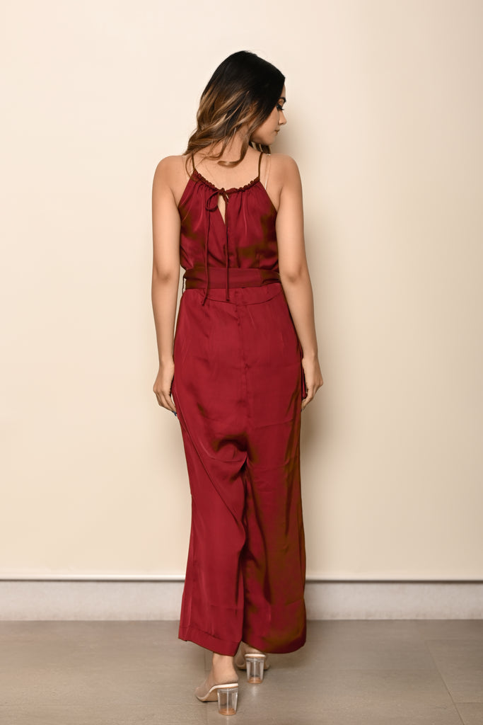 Burgundy Halterneck Jumpsuit