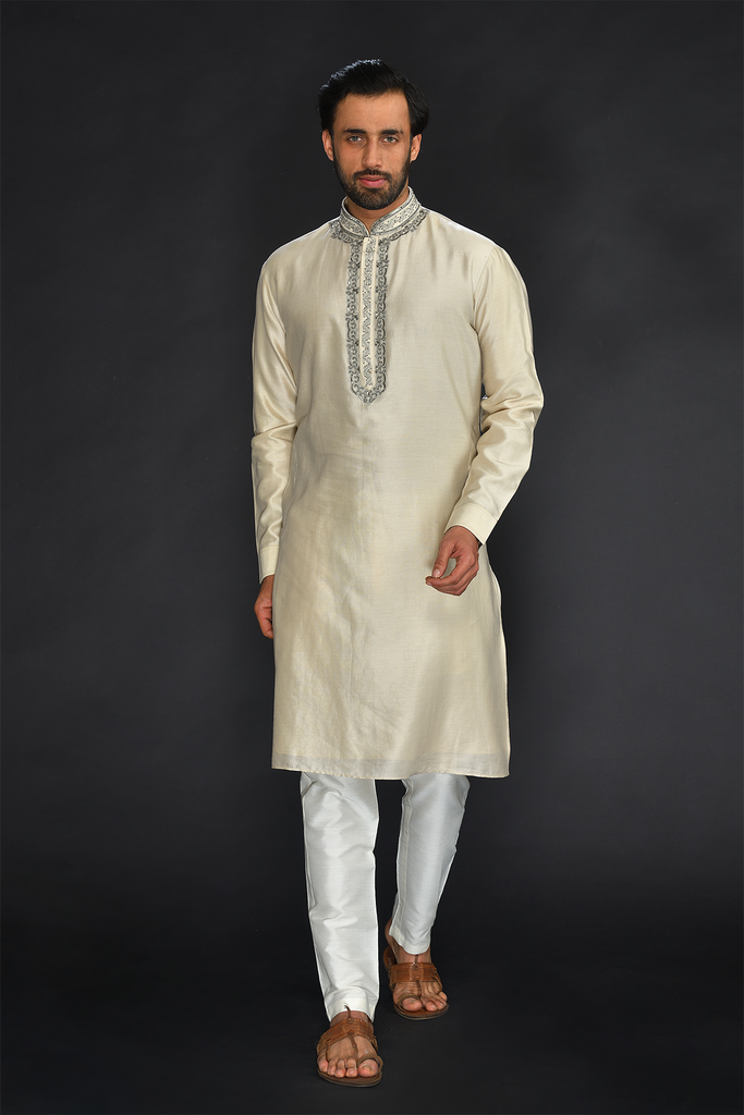 Beige Chanderi Kurta with Churidar