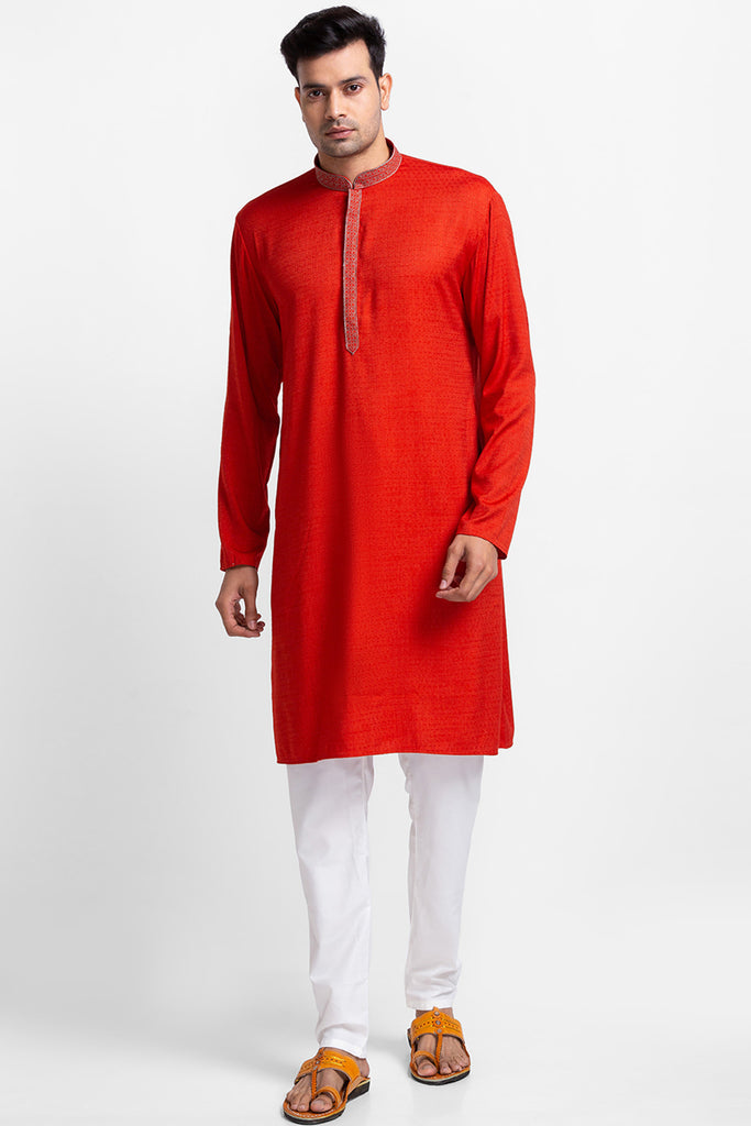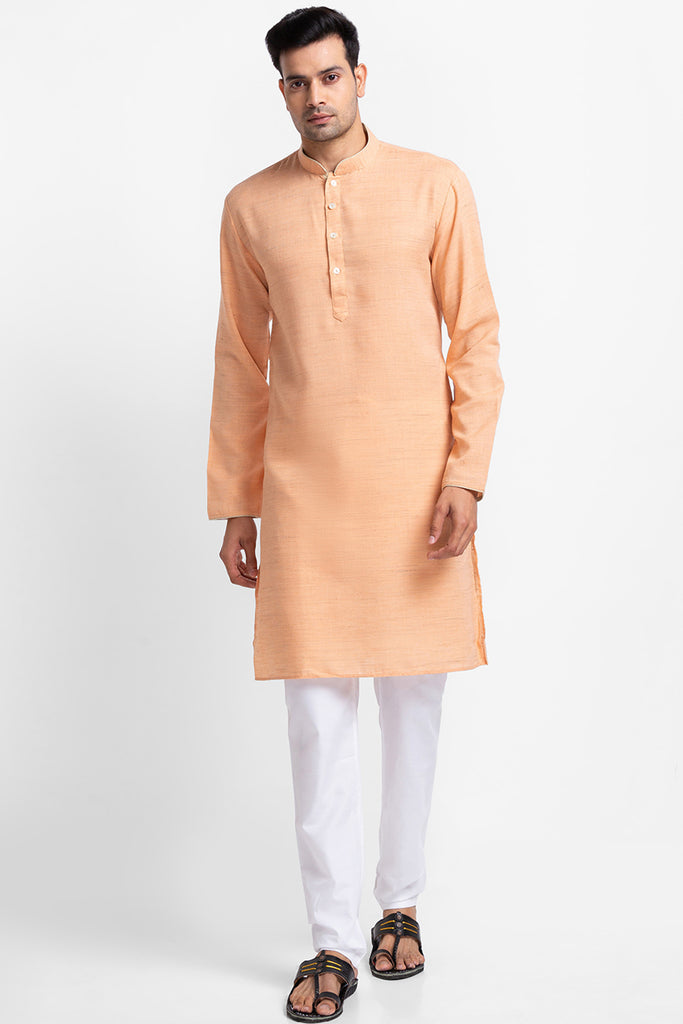 Orange Khadi Look Kurta with Churidar