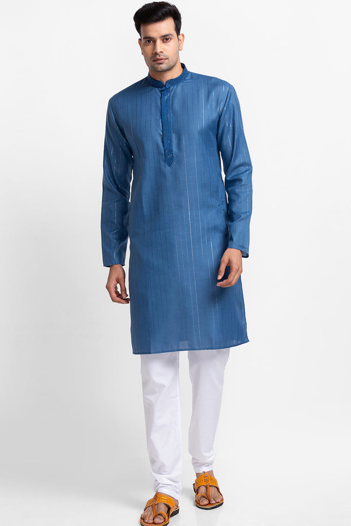 Blue Vertical Lurex Stripe Kurta with Churidar