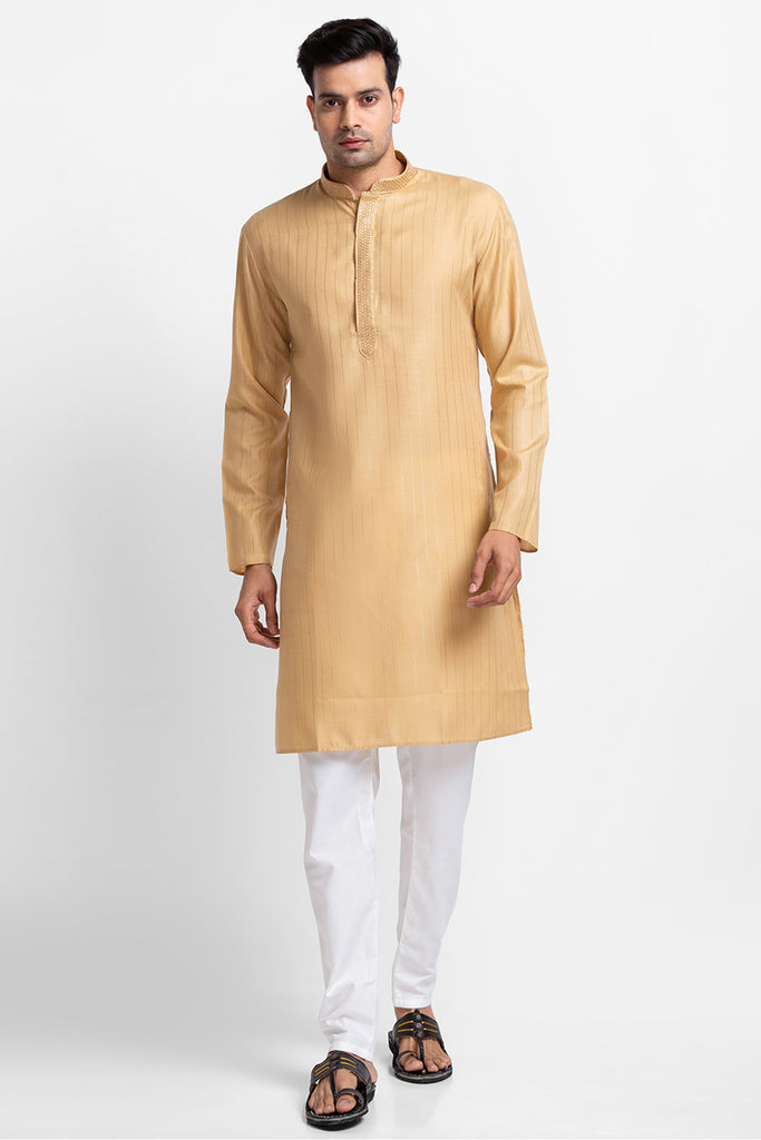Camel Vertical Lurex Stripe Kurta with Churidar