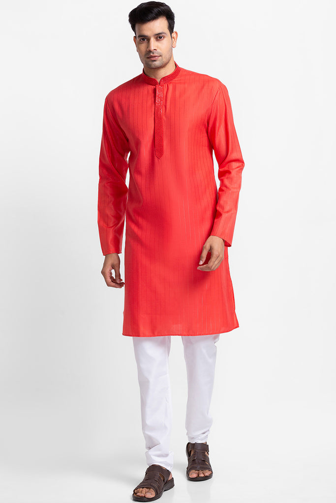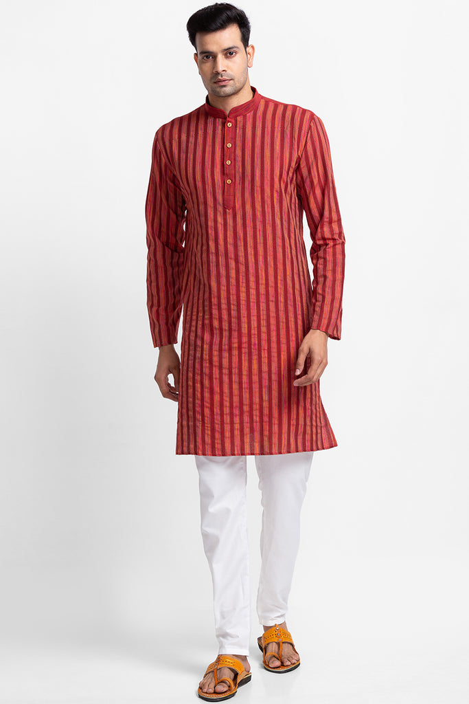 Orange Yarn Dyed Stripe Kurta with Churidar