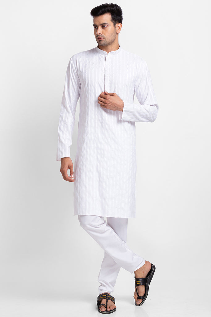 White Jaquard Fabric with Embroidery Kurta with Churidar
