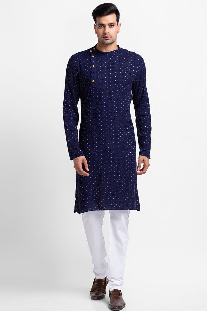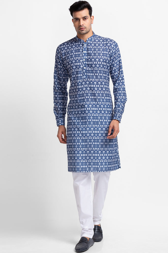 Blue Printed Kurta with Churidar