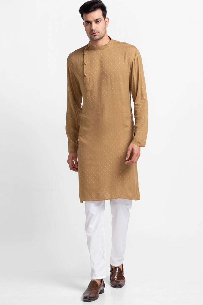 Camel Golden Zari Dobby Kurta with Churidar