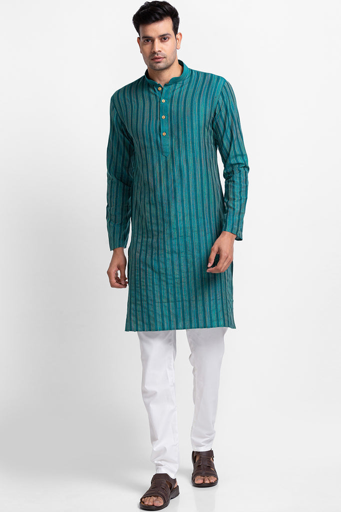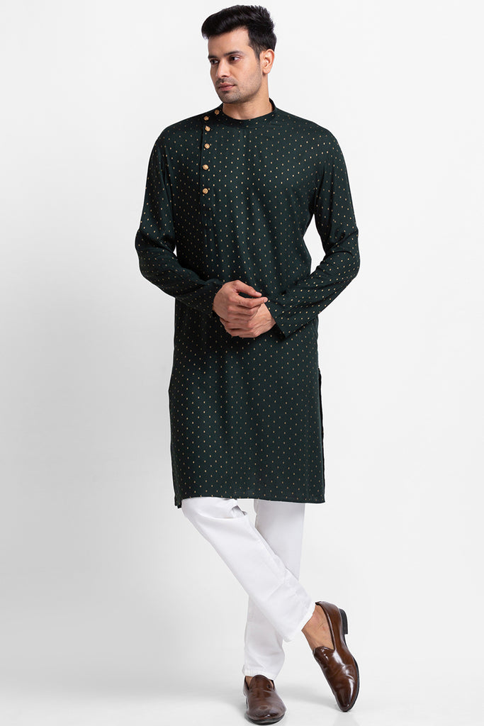 Green Buti Cotton Jacquard Fabric Kurta with Churidar