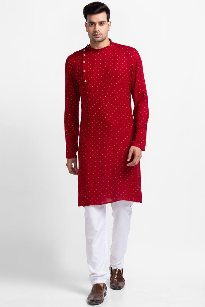 Red Golden Zari Dobby Kurta with Churidar