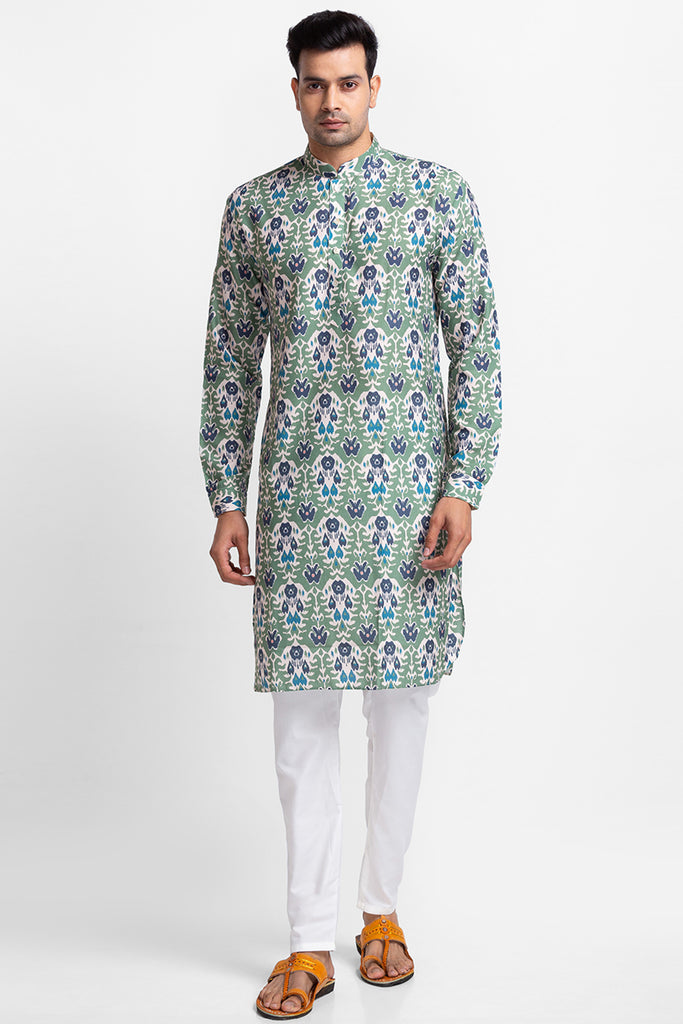 Green Digital Printed Kurta with Churidar