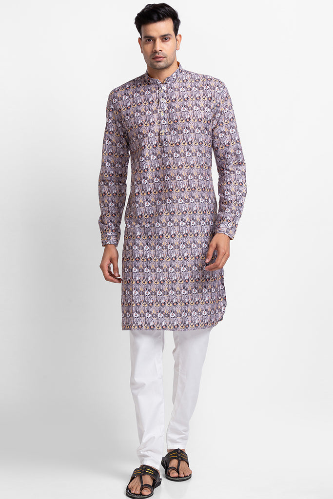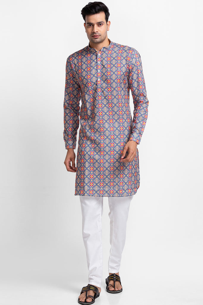 Grey Printed Kurta with Churidar