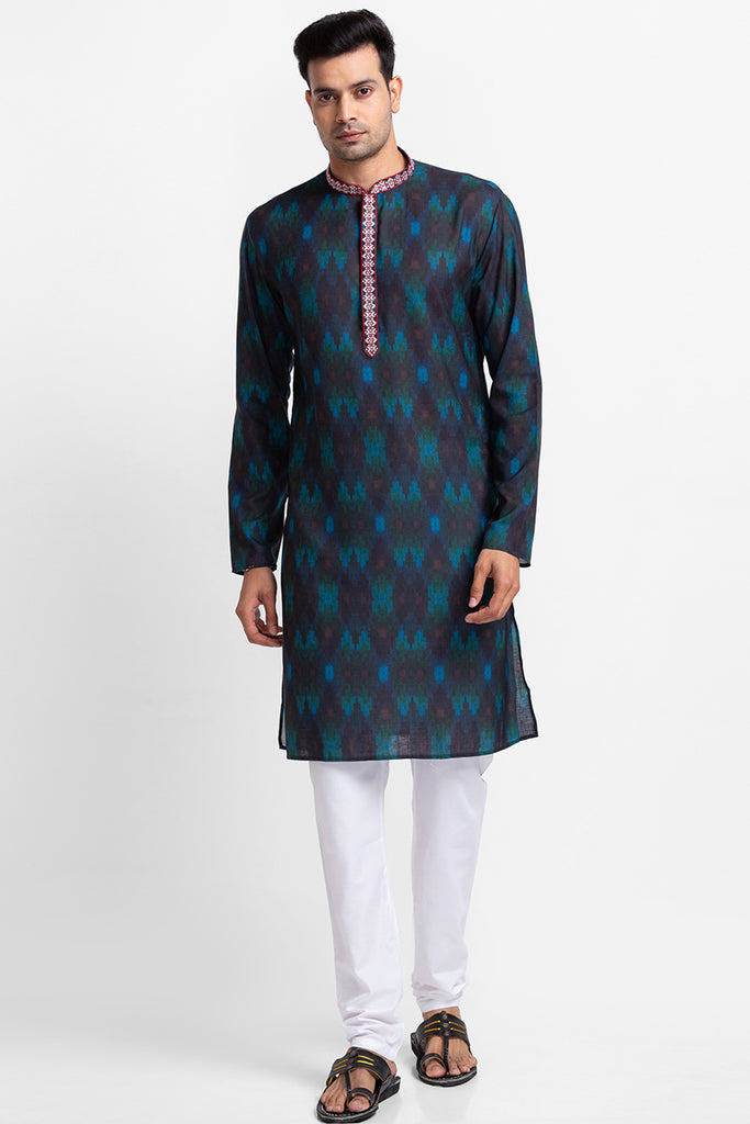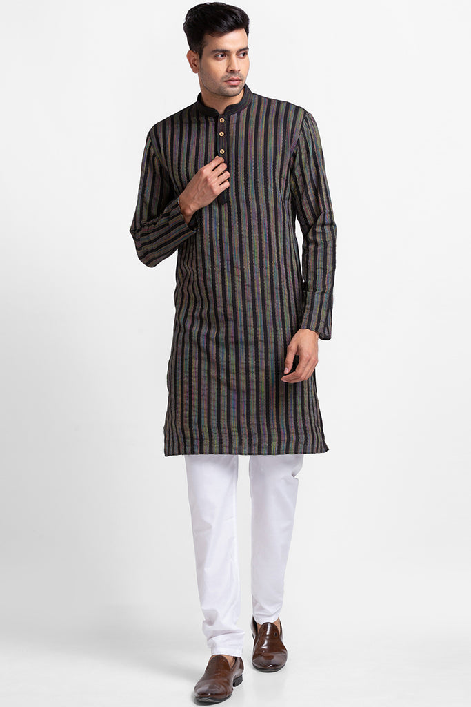 Black Handloom Fabric Kurta with Churidar