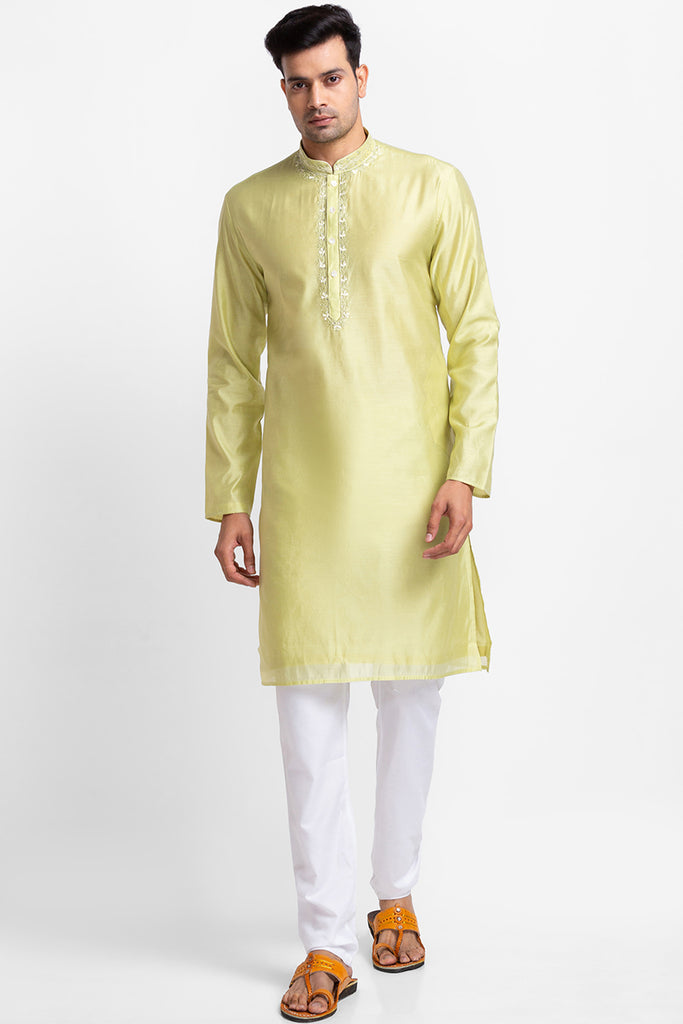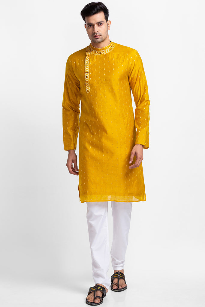 Yellow Chanderi Kurta with Churidar