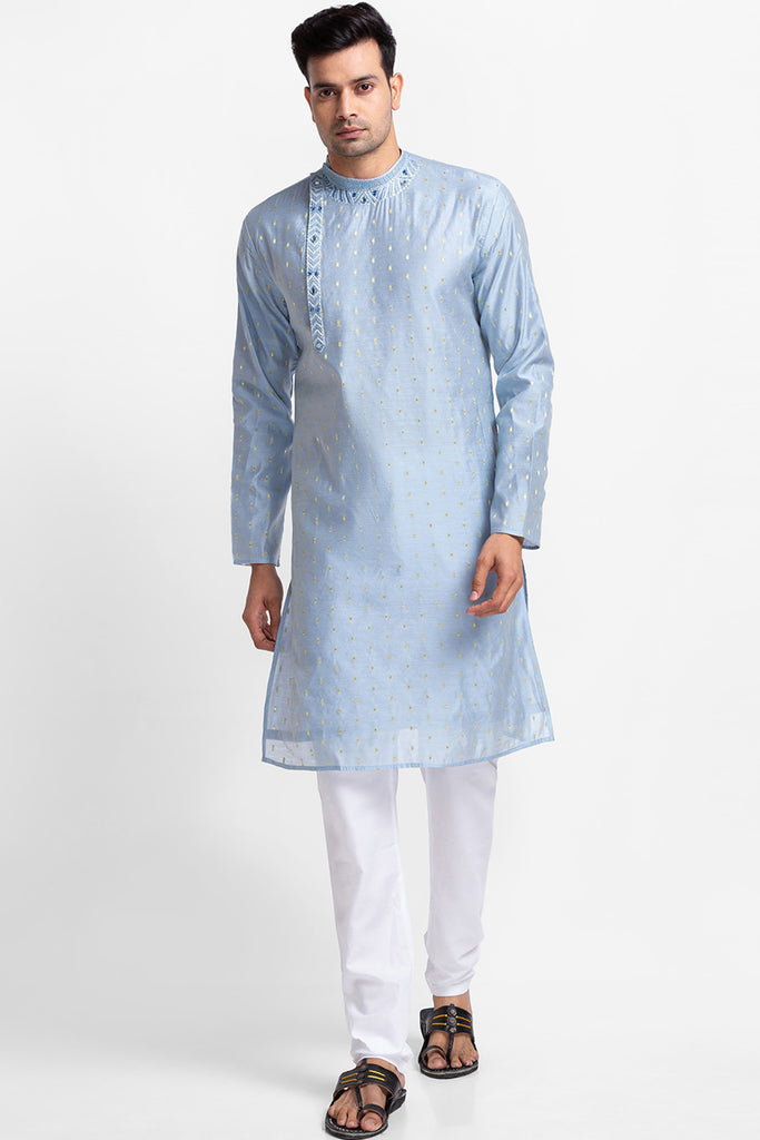 Blue Golden Zari Dobby Kurta with Churidar