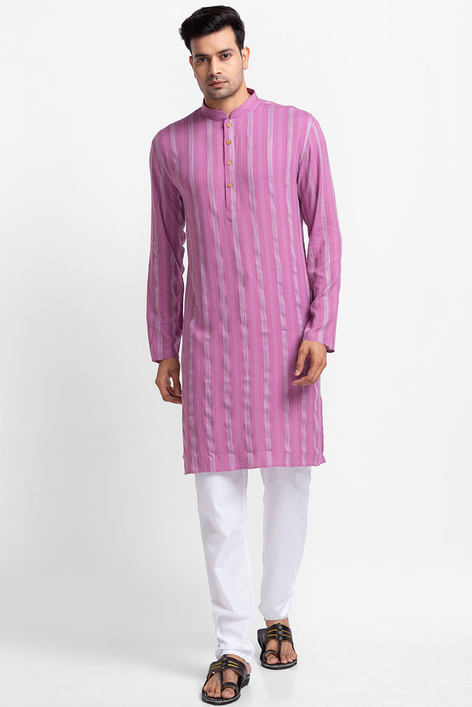Pink Dyed Stripe Kurta with Churidar