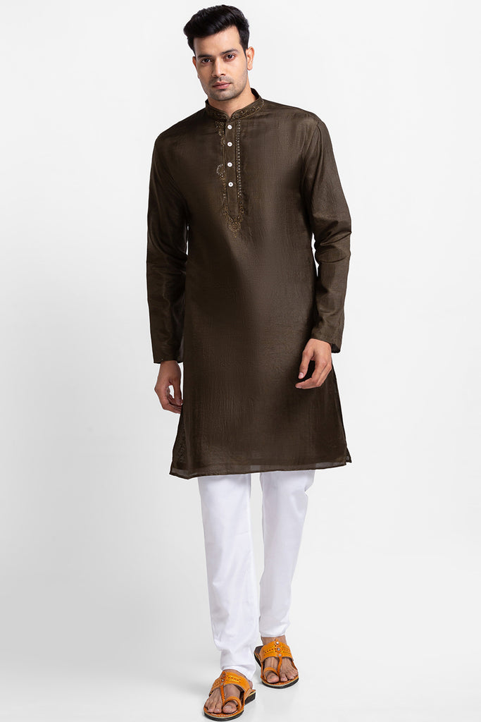 Khakhi Chanderi Fabric Kurta with Churidar