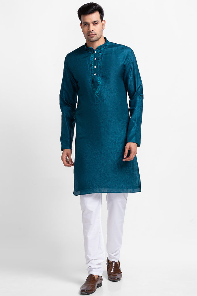 Teal Chanderi Fabric Kurta with Churidar