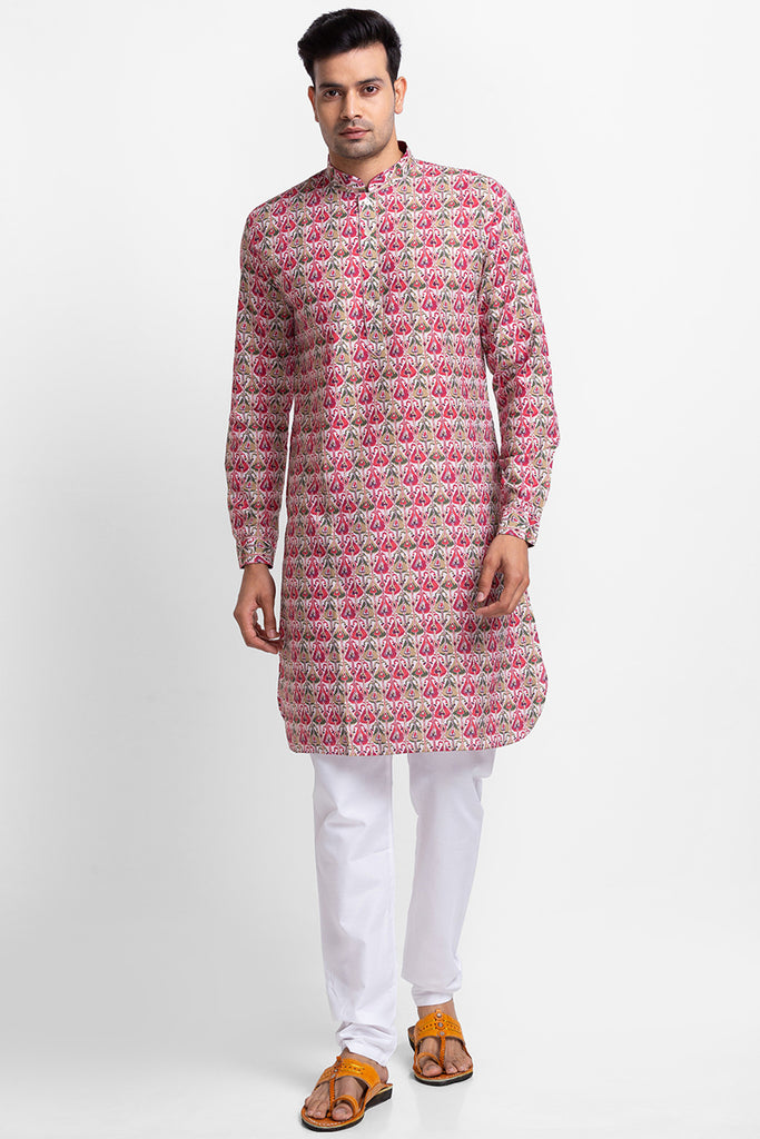 Multicolor Apple Cut Printed Kurta with Churidar