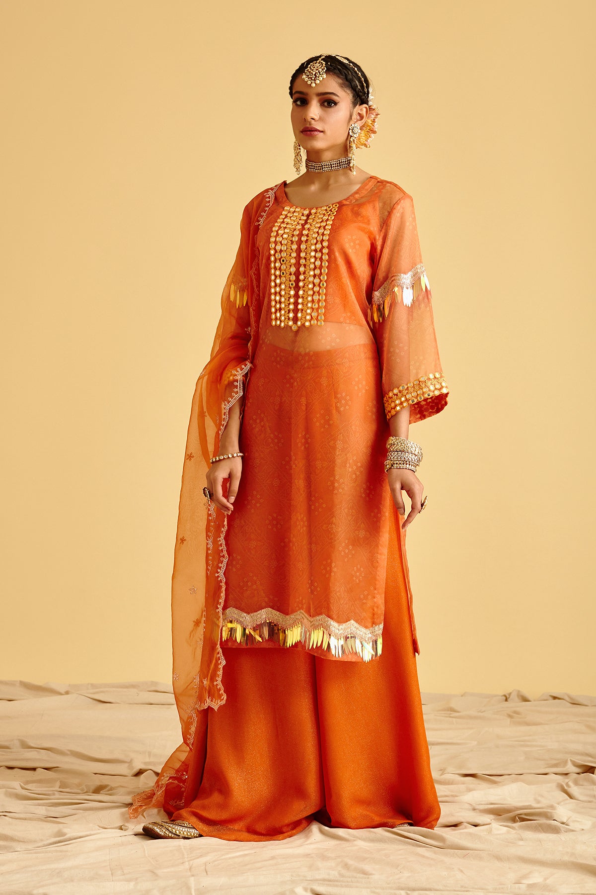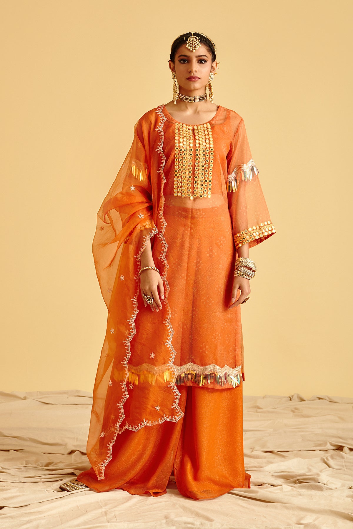 Tangerine Orange Kurta, Sharara and Dupatta Set