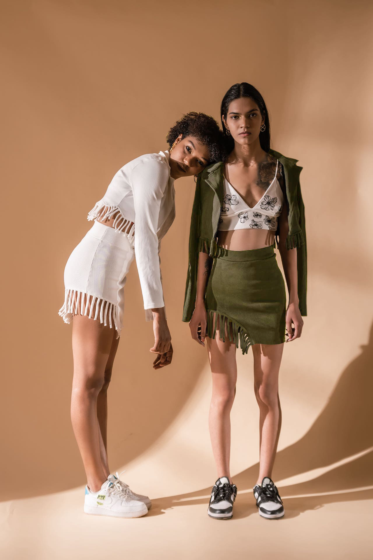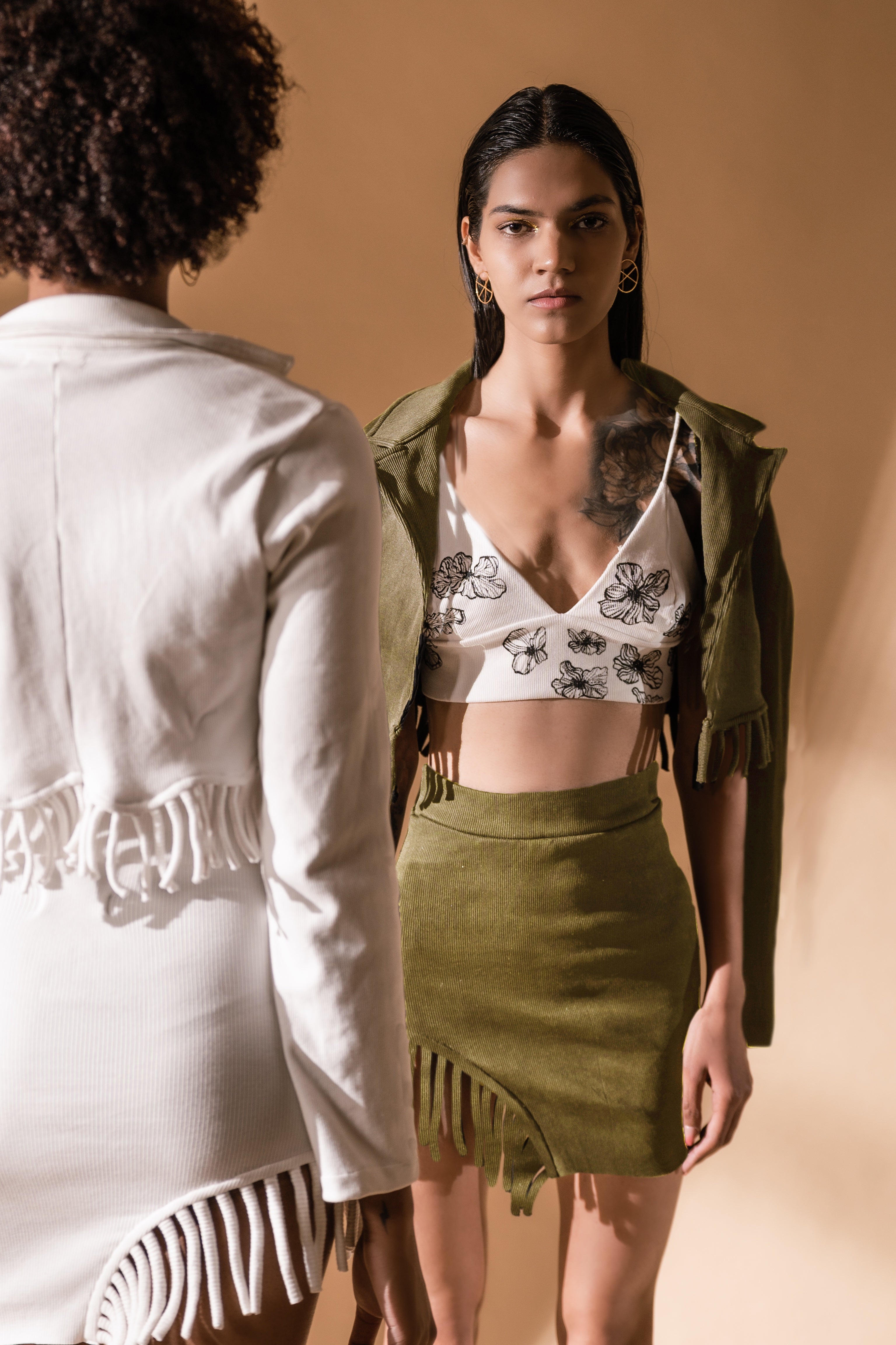 A fitted and cropped blazer with a lapel collar. An eye catching hemline with knit coords. Pair it up with our marta skirt for a co-cord.