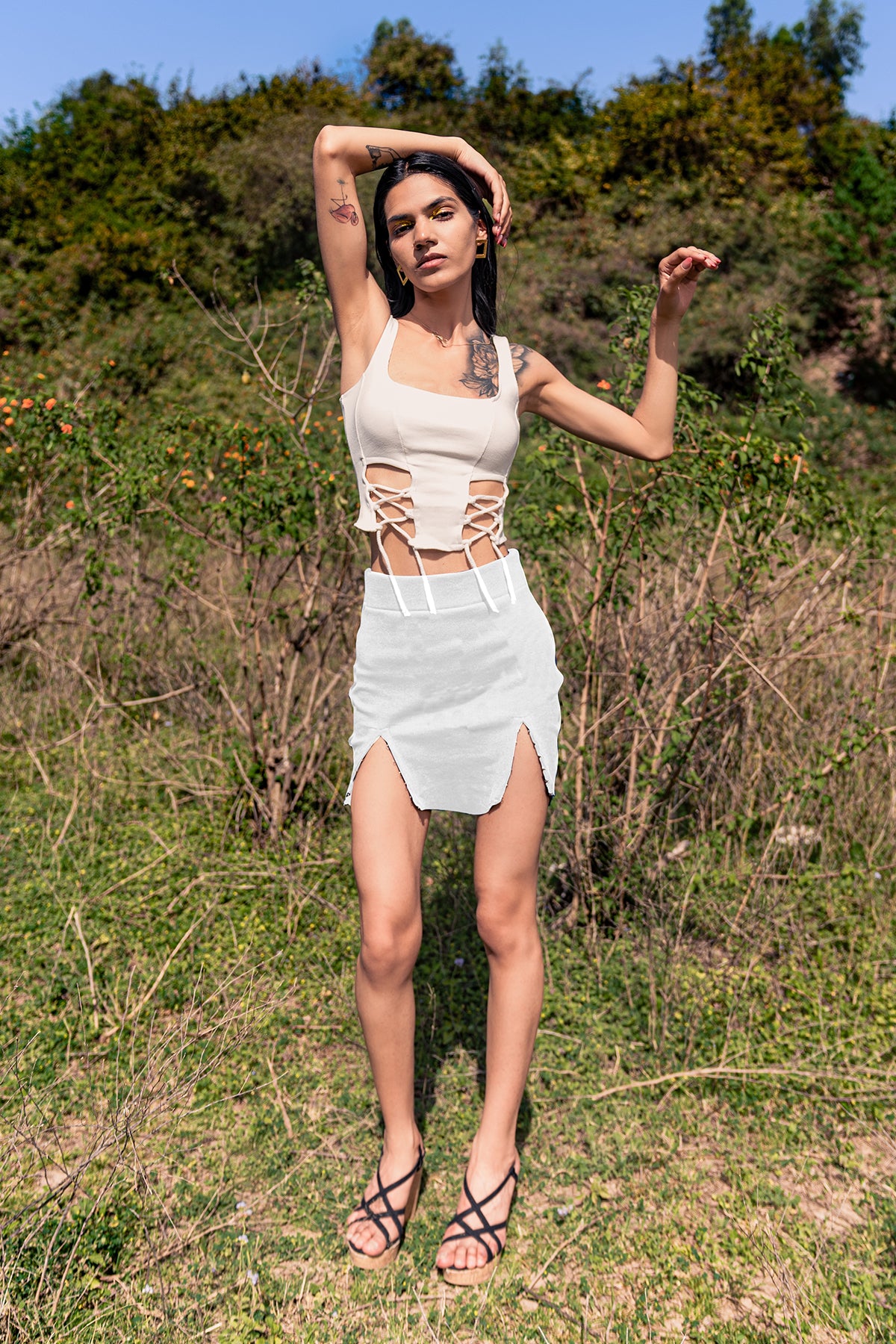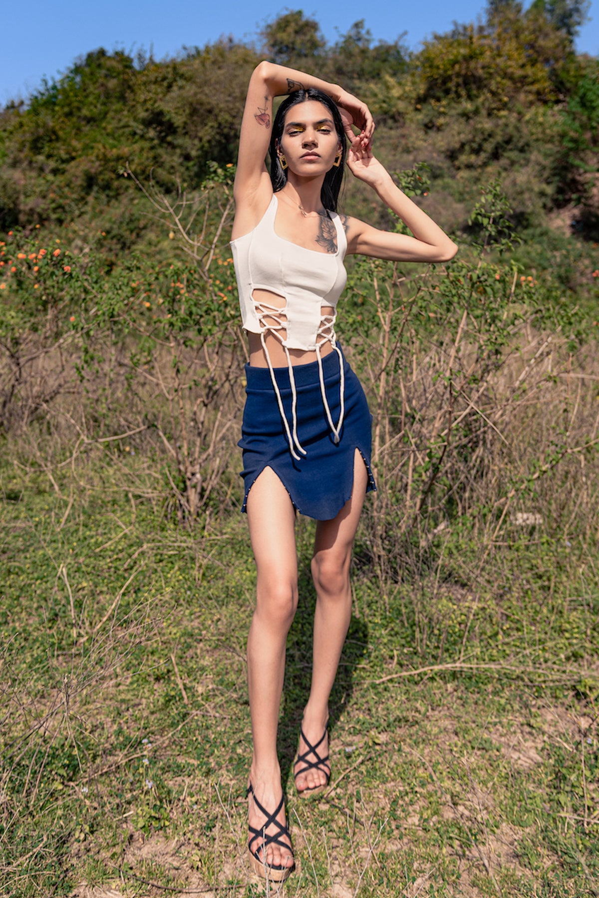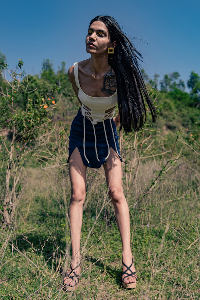 A vintage inspired top featuring a smocked high neck and elasticated shoulders and waist for a flattering fit. Made from natural fiber, this top is super soft on the skin.