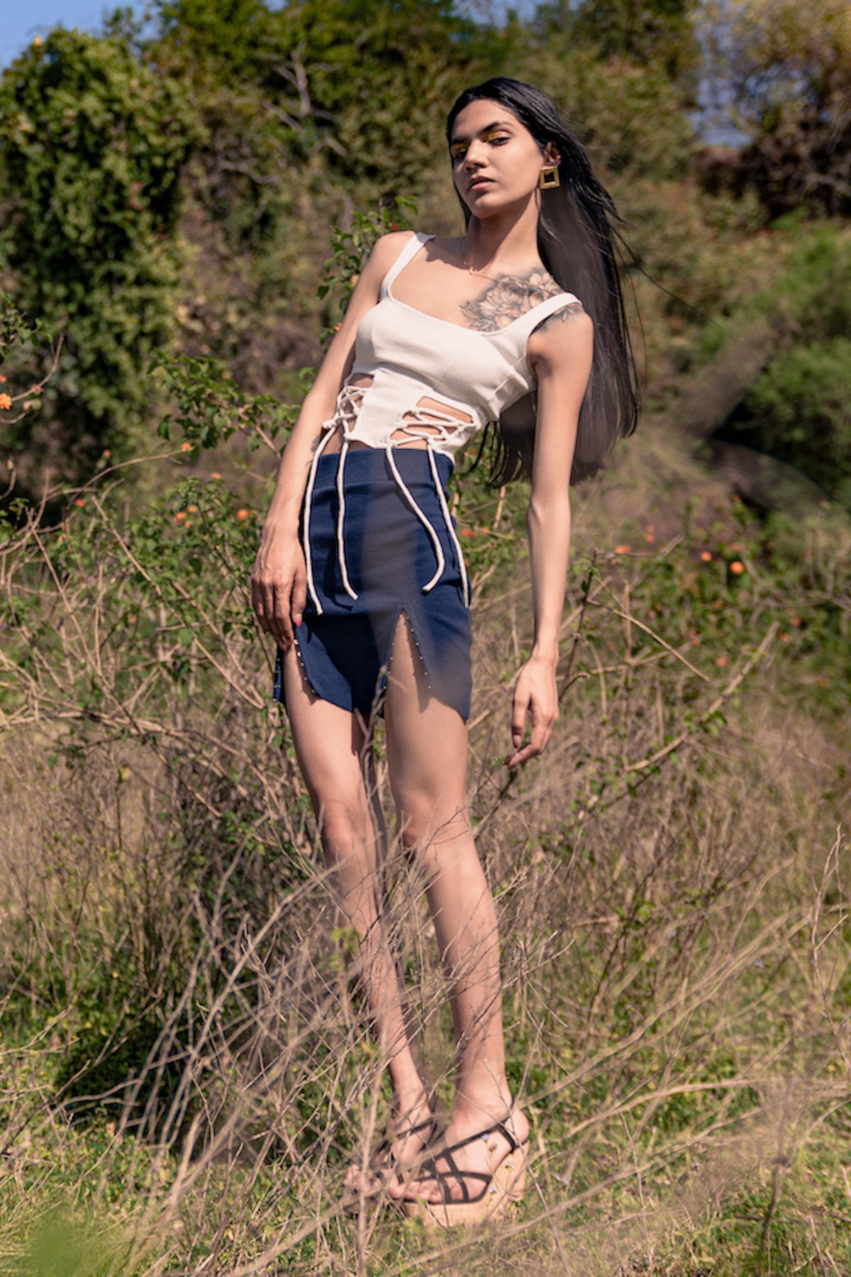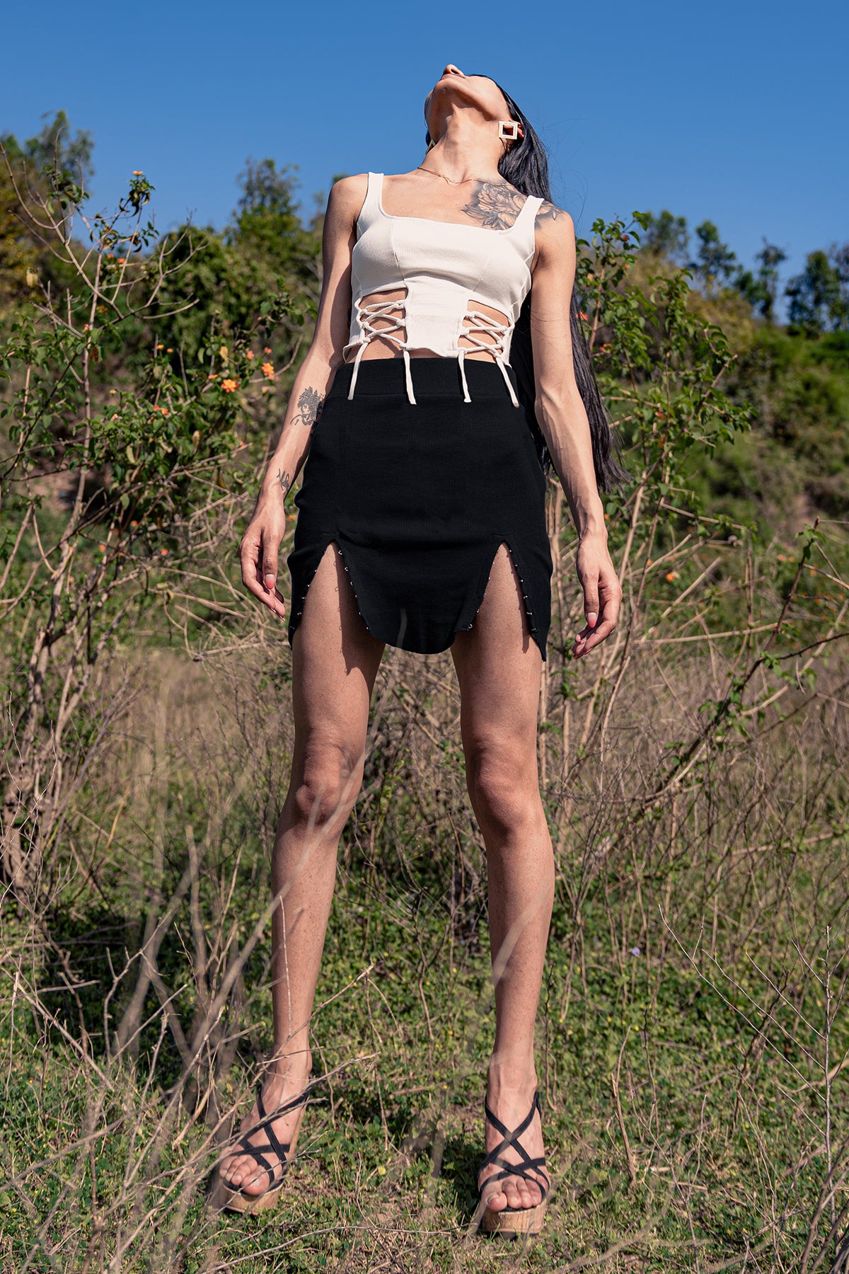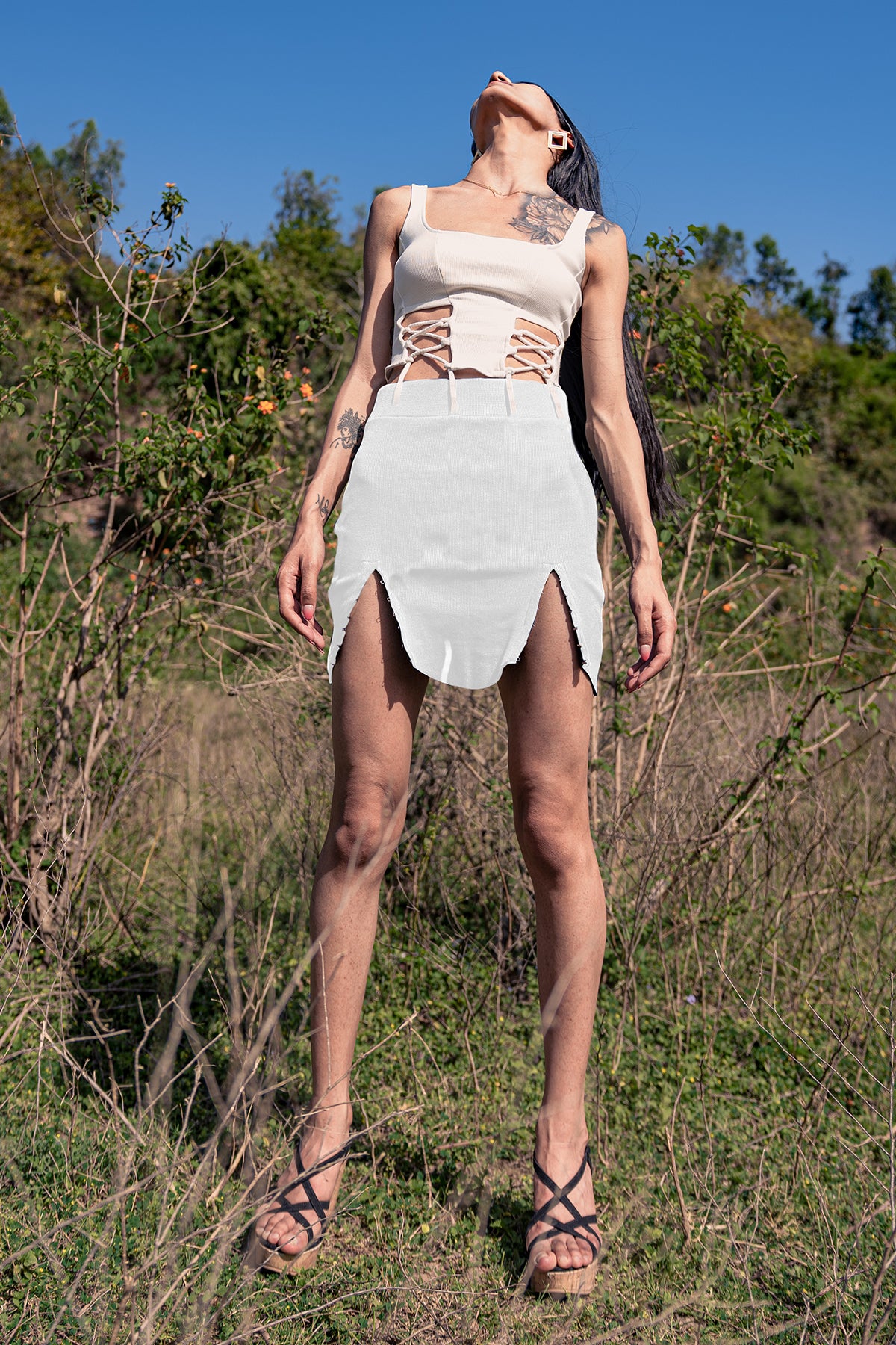 A vintage inspired top featuring a smocked high neck and elasticated shoulders and waist for a flattering fit. Made from natural fiber, this top is super soft on the skin.