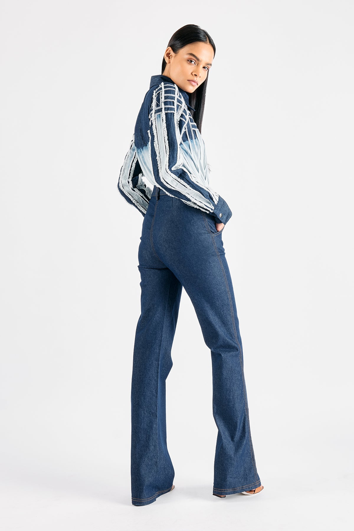 Frayed tapes details on sleeves