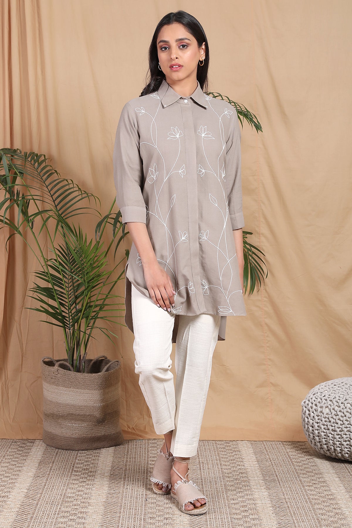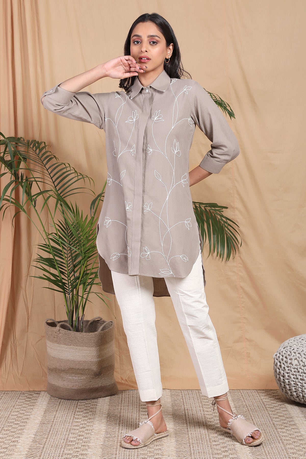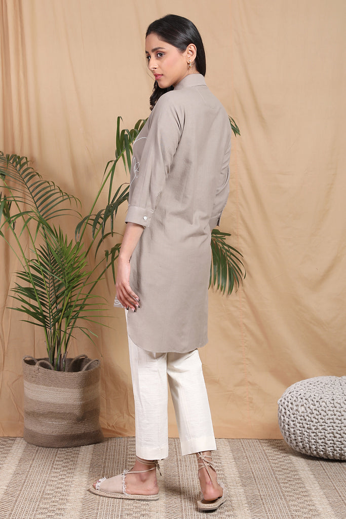 Make bold statements in this beautiful embroidered Leher shirt. Handcrafted in handwoven cotton fabric this shirt is suitable for formal as well as casual outings. It has beautiful floral embroidery all over with concealed placket in the front. Pair it up with white Pants and you're ready to take over the world honey!